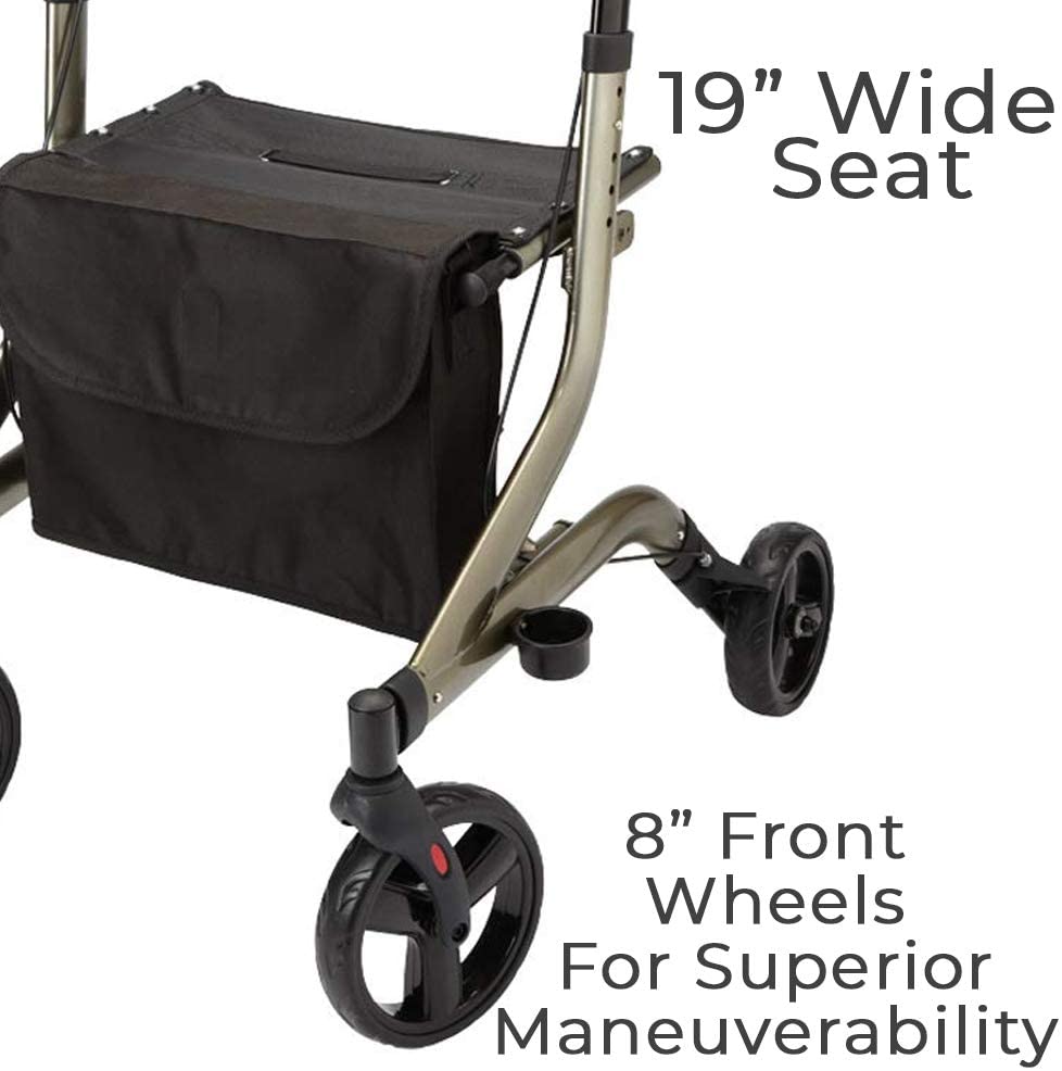 Well made, strong, extremely light, turns on a dime, easy to collapse to put in vehicle, and $100 or more less than other eurostyle rollators!