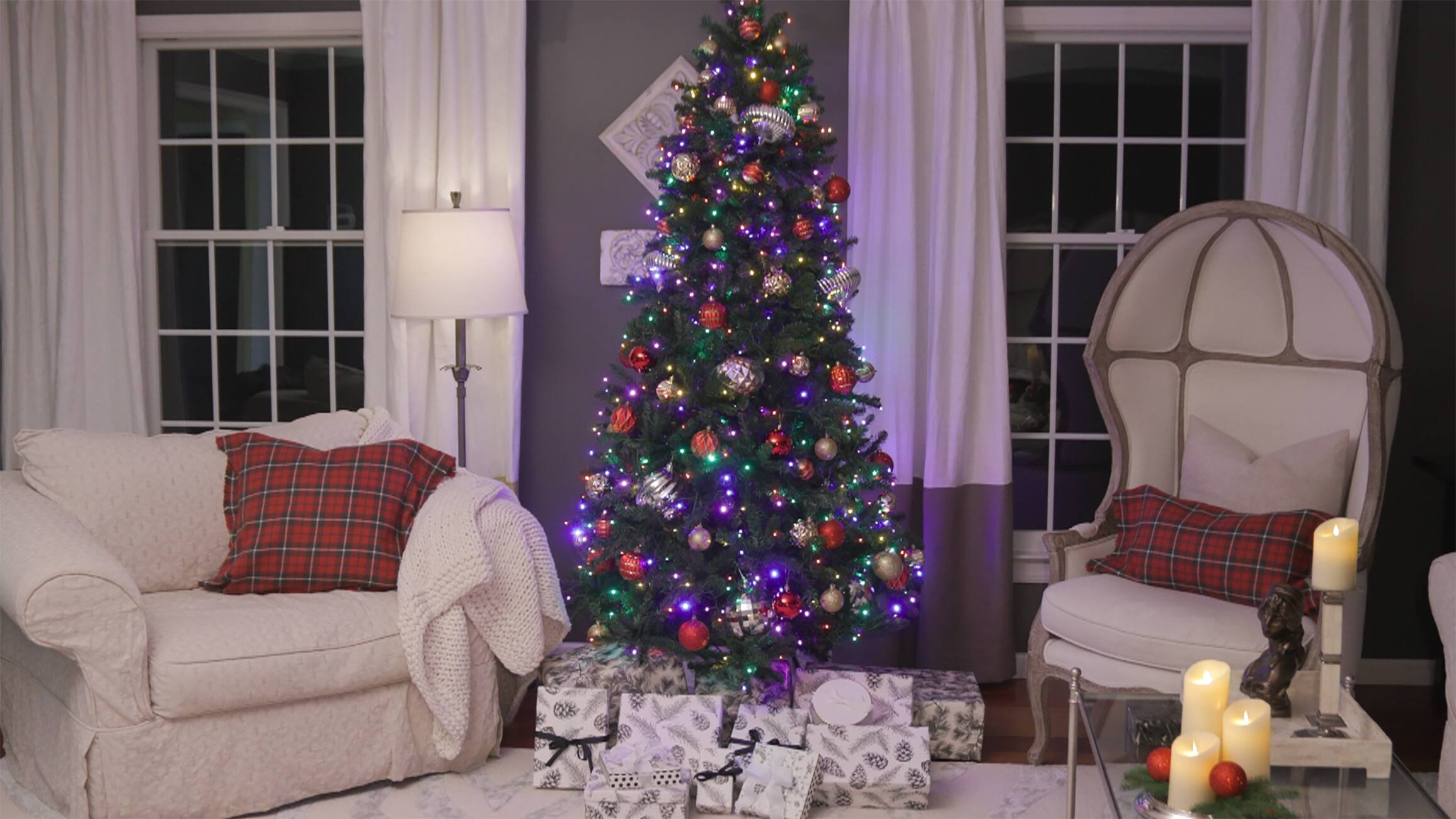 The tree does err on the side of being a bit taller and skinnier rather than wider, but for us it fits perfectly in the space, with plenty of room to maneuver around and hang ornaments without feeling overcrowded. As for the LEDs, they are bright and look very high quality to my eye. The white lights are my personal favorite and cast a warm glow that looks very natural and pleasant in a dim room. The multicolor settings meanwhile look saturated and quite bright, with red, green, purple, blue, and yellow. All colors look evenly distributed and are intertwined on the tree very naturally. The 7 preset modes are solid white, solid multicolor, fading white, fading multicolor, flashing white, flashing multicolor, and alternating white & multicolor.