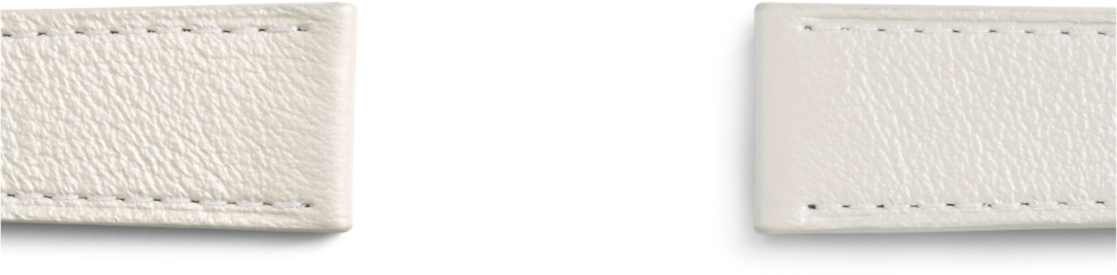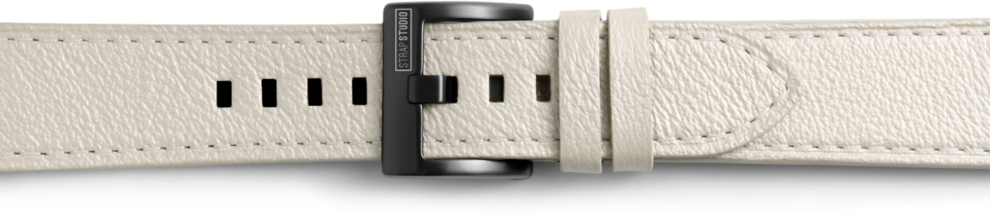 I was expecting an off ehite band, but what I got is something that looks like it has a bit of glitter injected into it. It sparkles frok some directions, and compared to the watch it's pretty thin so it just looks super awkward