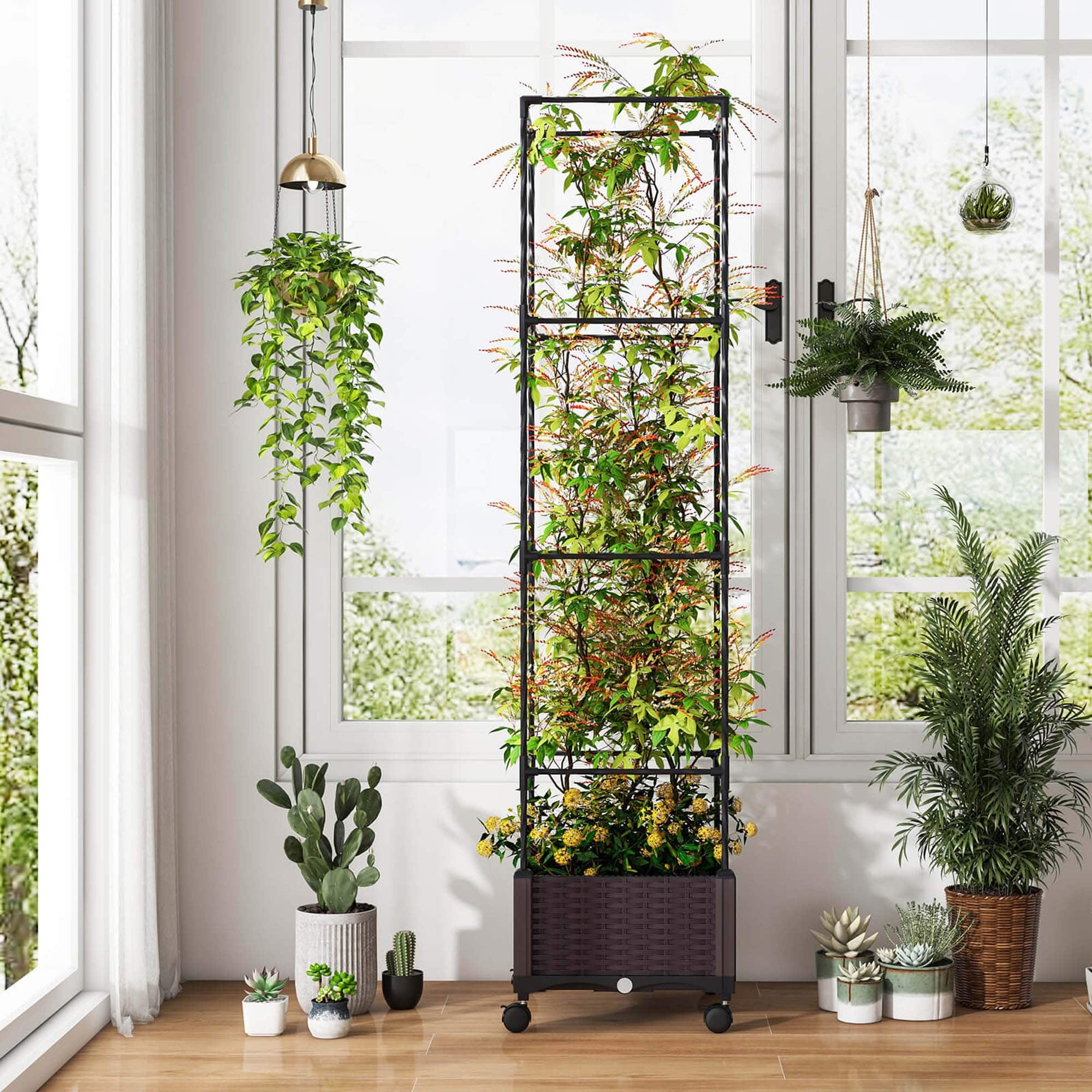 Sturdy perfect size rolling planters.