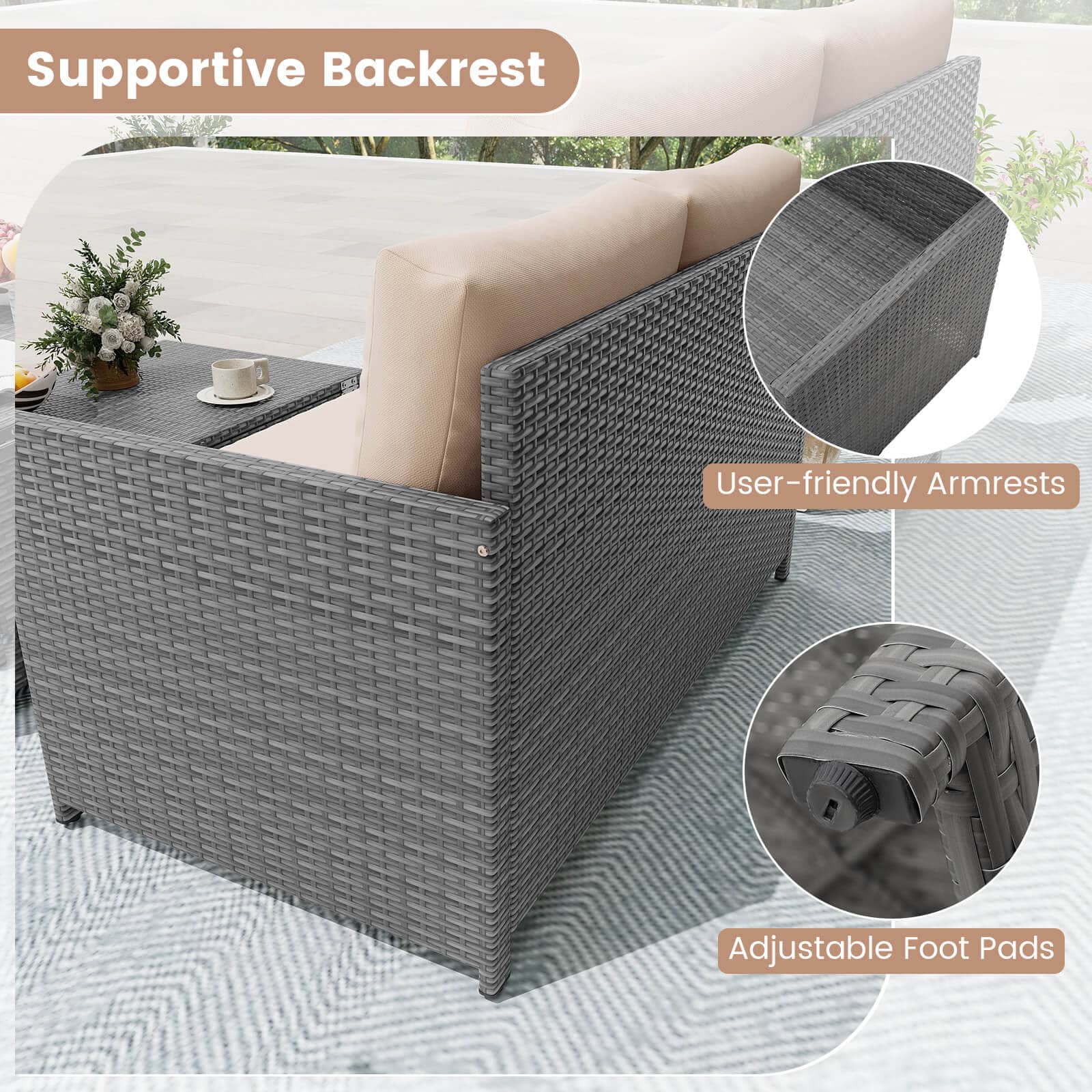 This review is from Costway - 2 PCS Patio Loveseat with 31 Gal Multifunctional Storage Ottoman and Soft Cushions - Mix Gray,Brown