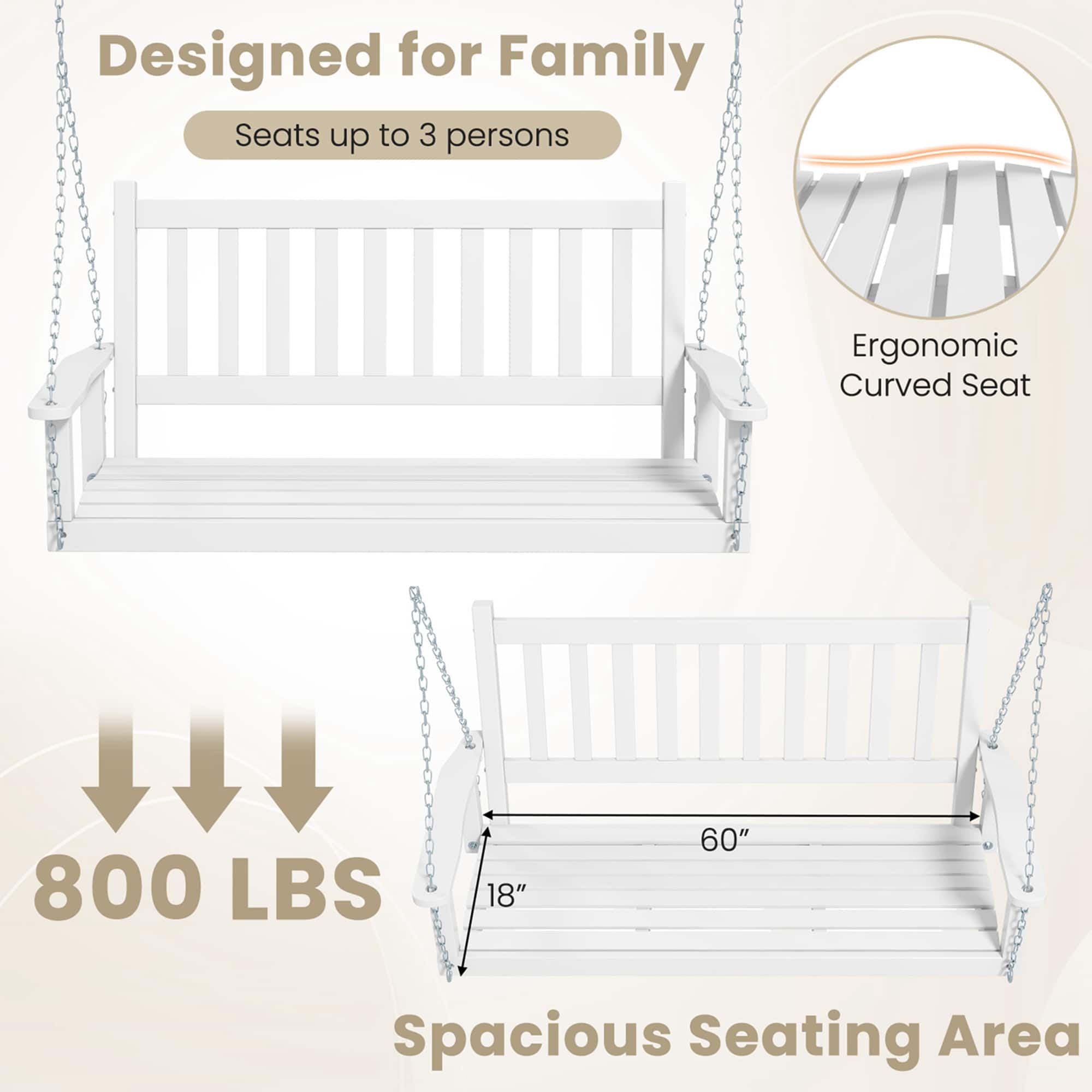 This review is from Costway - 3-Person Wooden Outdoor Porch Swing Heavy Duty Patio Hanging Bench Chair - Brown
