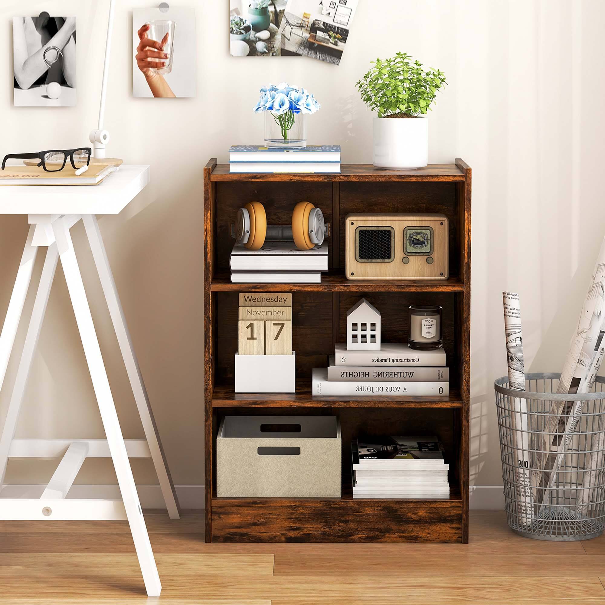 This review is from Costway - 3-Tier Bookcase Open Multipurpose Display Rack Cabinet with Adjustable Shelves - Rustic Brown