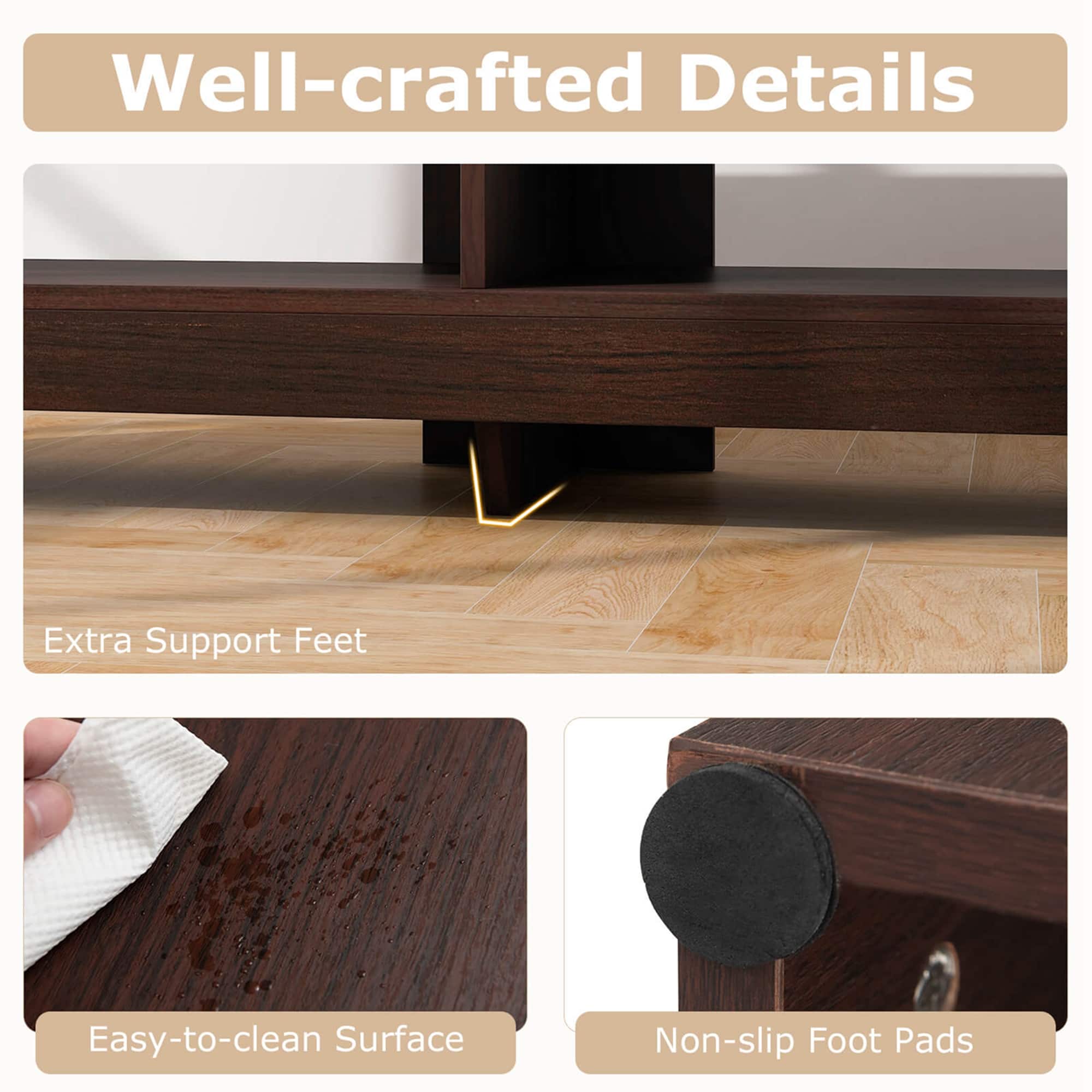 Very hard to assemble, a nightmare and best buy doesn’t assemble this tv stand. Have to be gentle screwing in the pieces the wood breaks easily