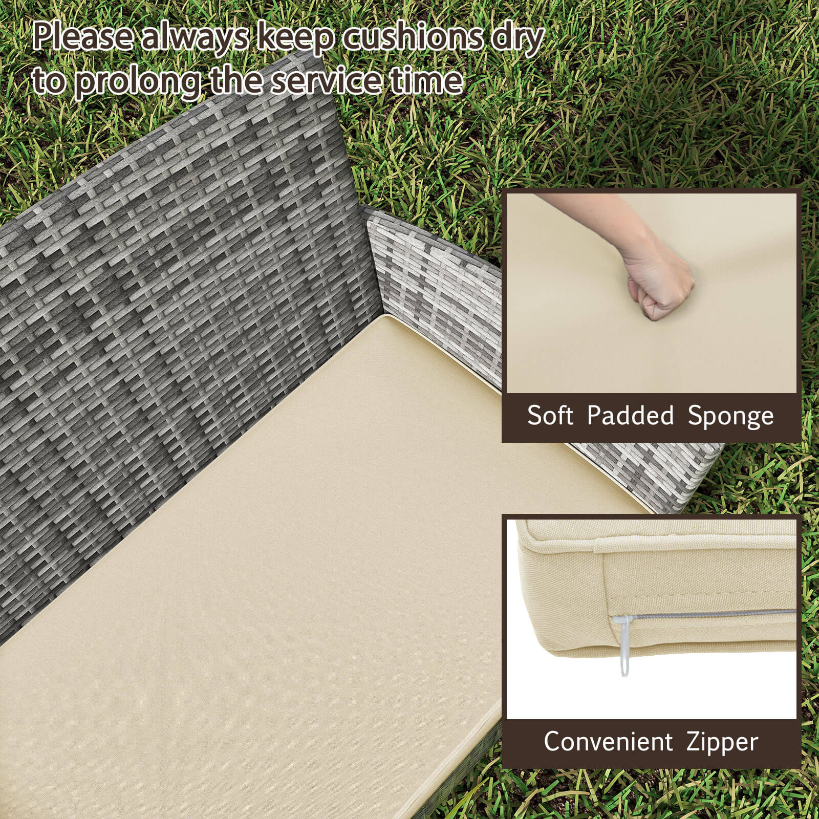 This review is from Costway - 4 PCS Patio Furniture Set with Washable Cushions and Tempered Glass Coffee Table - Mix Brown + Grey