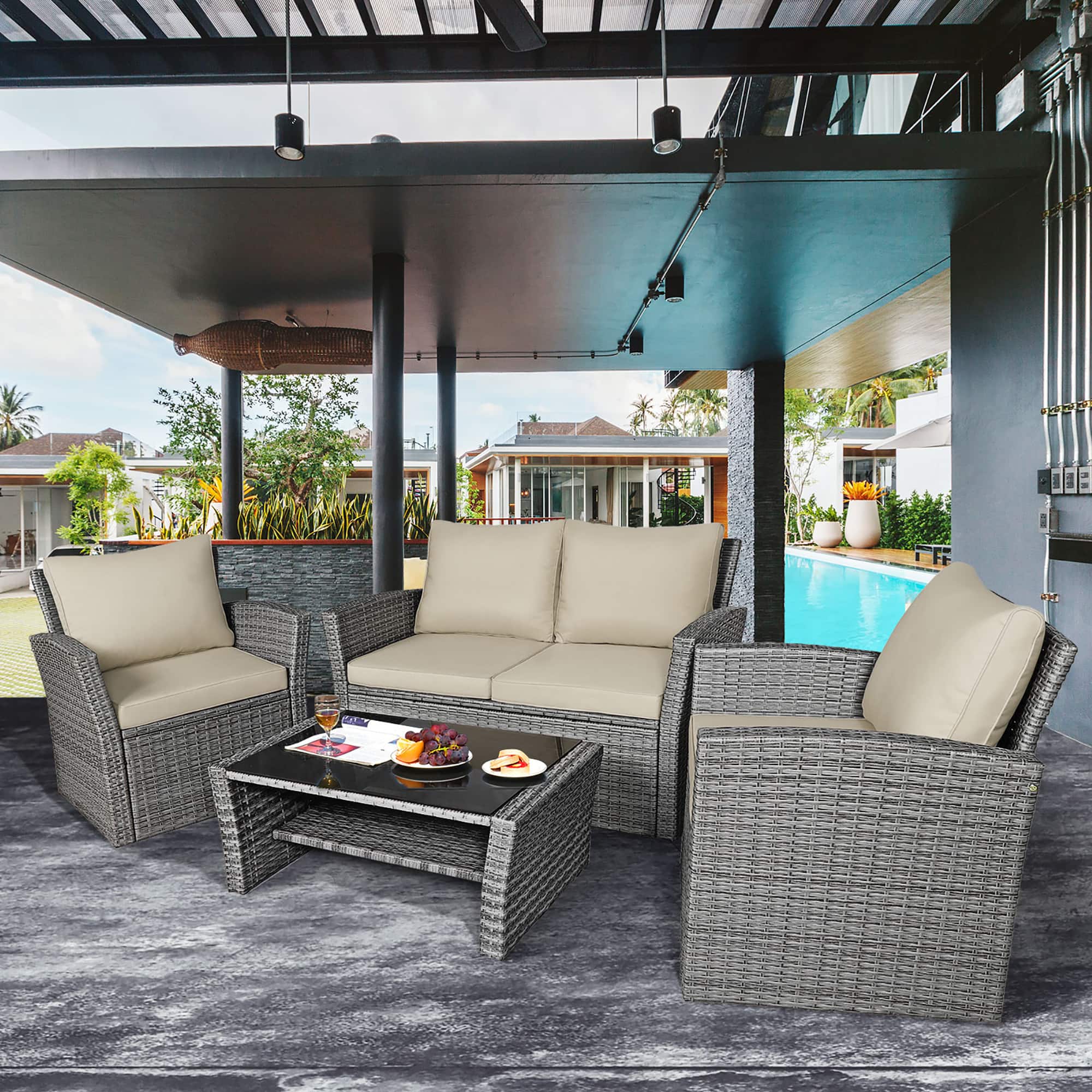 There were alot of parts and we needed to use an allen key for all the bolts which made putting it all together a real pain in the butt. In the end it was all worth it. This is a very nice product. The cushions are comfortable. I would recommend it.