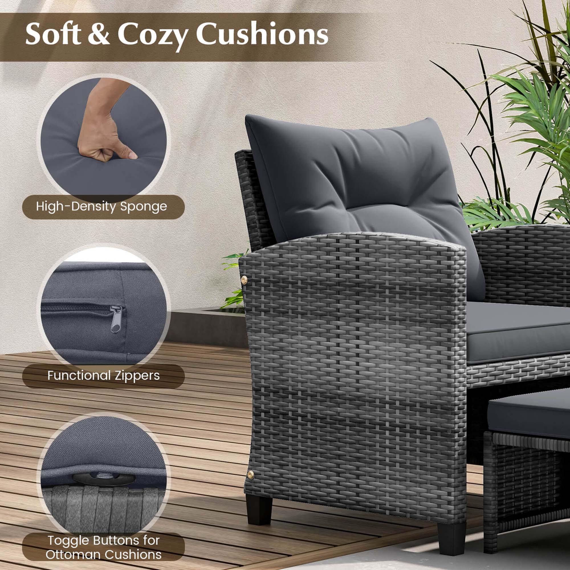This review is from Costway - 5 Piece Patio Rattan Furniture with 2 Ottomans & Tempered Glass Coffee Table - Black