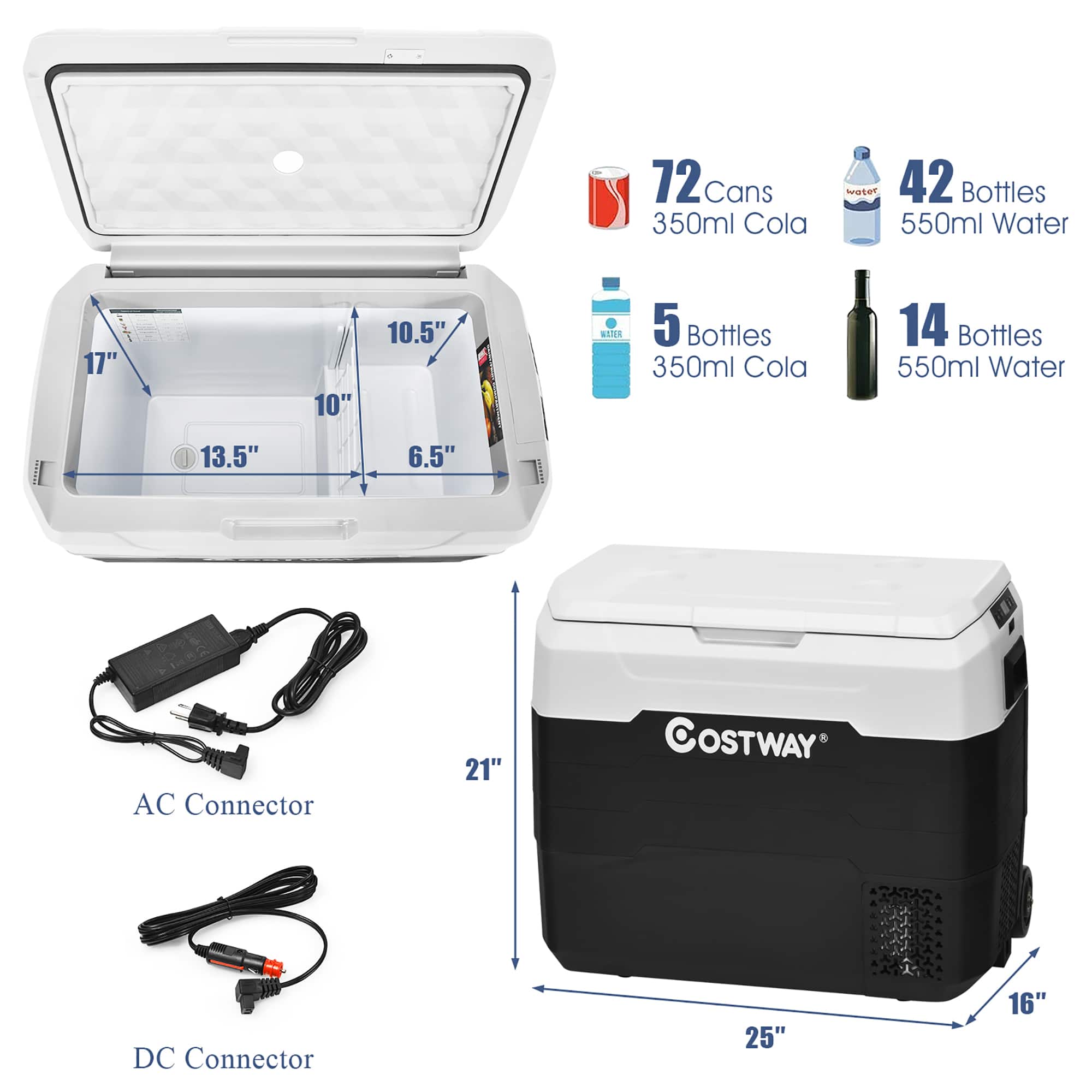 This review is from Costway - 53 QT Portable Car Refrigerator Dual-Zone Car Cooler for RVs - White