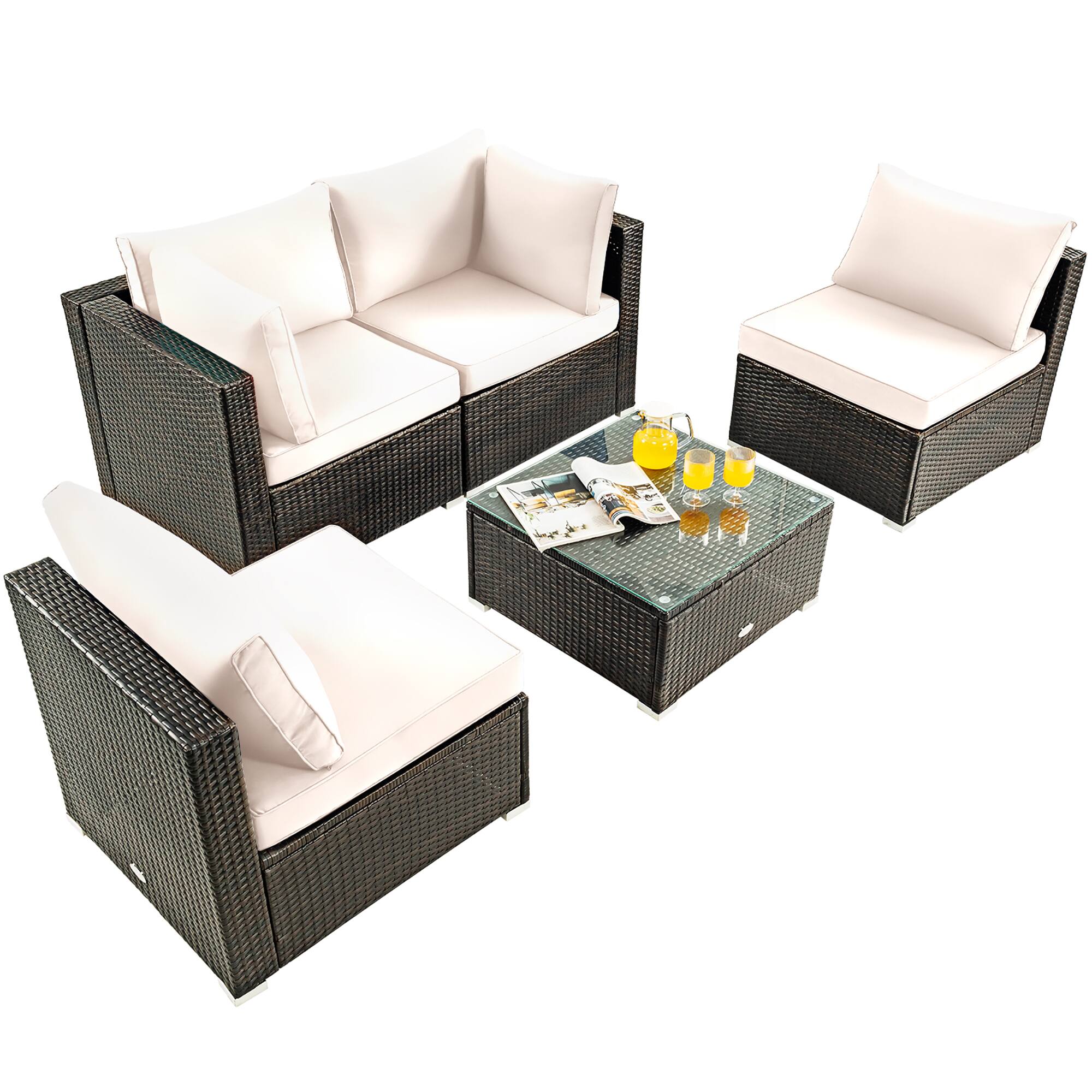 This review is from Costway - 5PCS Patio Rattan Furniture Set Cushioned Sofa Chair Coffee Table - Navy