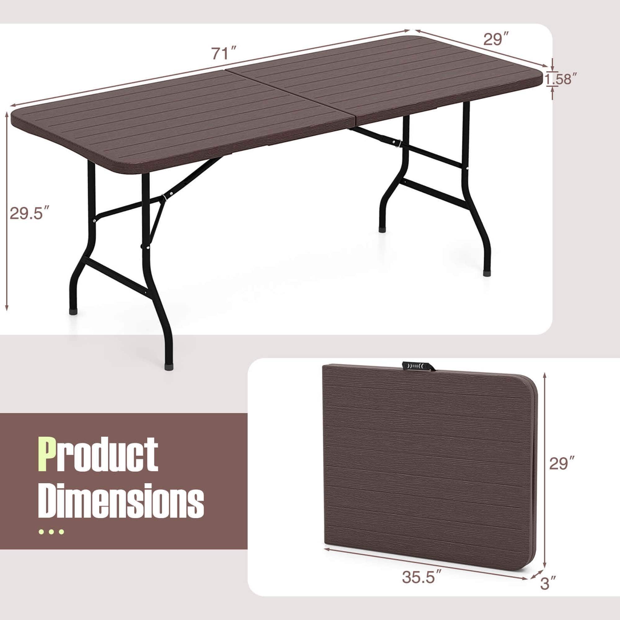 This review is from Costway - 6 ft Portable Folding Table with Wood Grain HDPE Tabletop Safe Lock Mechanism - Gray