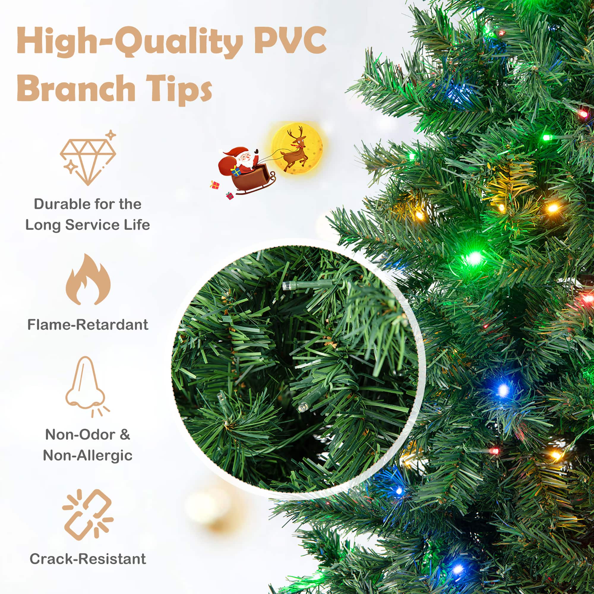 This tree looks nothing like the picture. It looks nice and full. The tree is not full it looks as if branches are missing, but they are so far spread apart. Fluffing will help but not that much. When you hang an ornament on one side you will be able to see through the tree and see it on the other side. The lights are nice and light the tree well. For being a $200 tree it isnt worth the price.