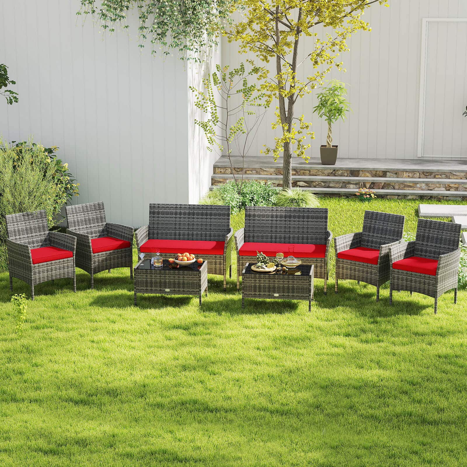 This review is from Costway - 4 PCS Patio Furniture Set with Washable Cushions and Tempered Glass Coffee Table - Mix Brown,Red