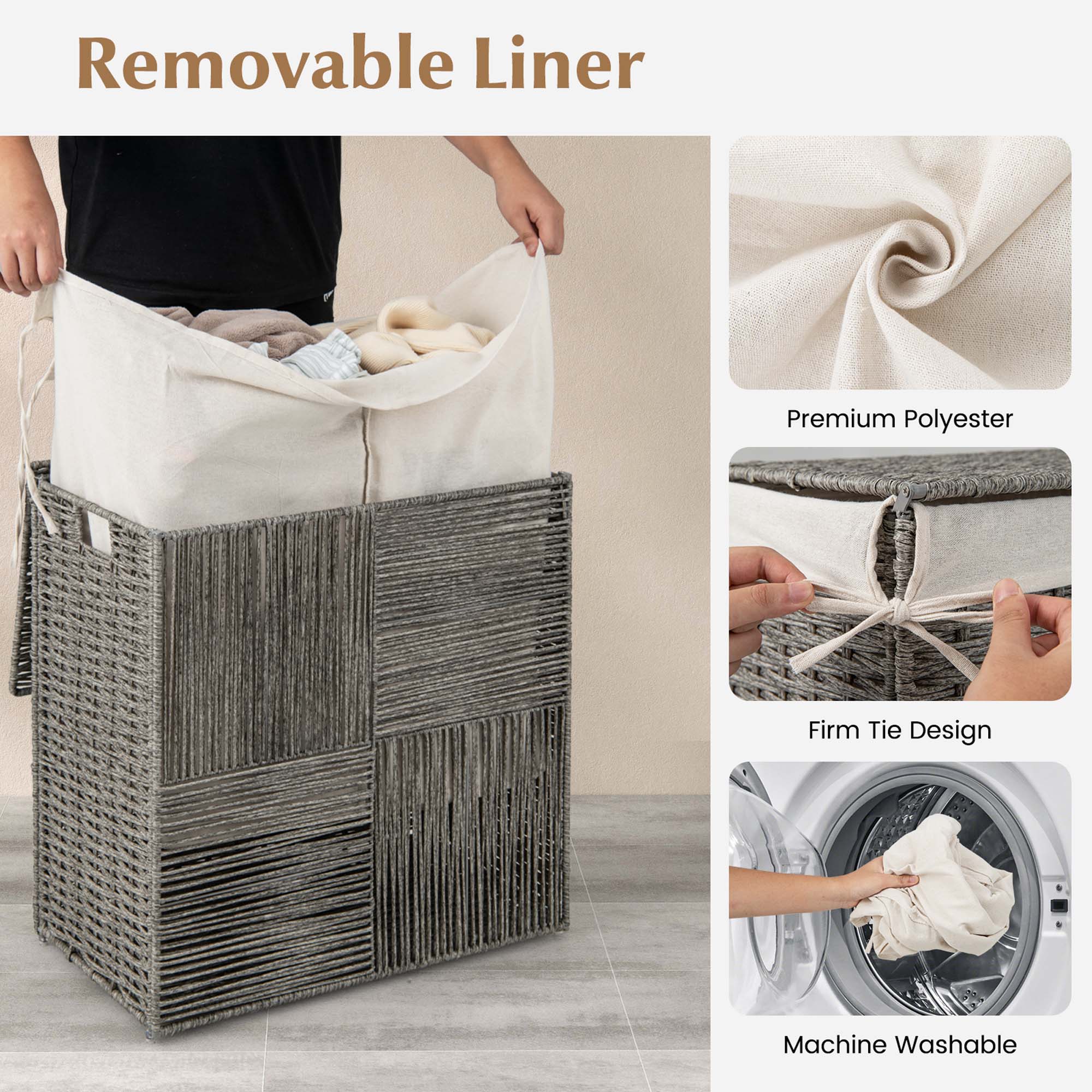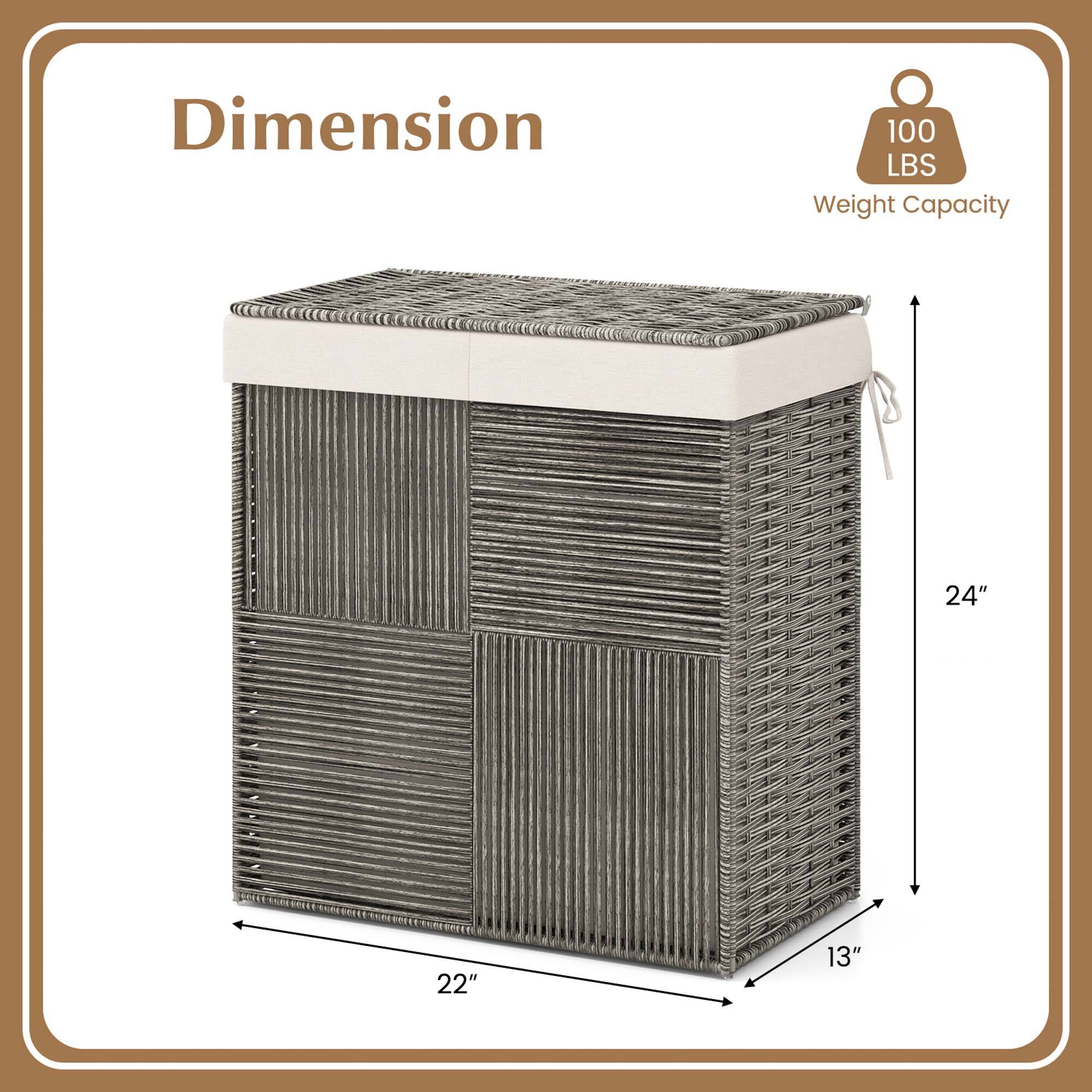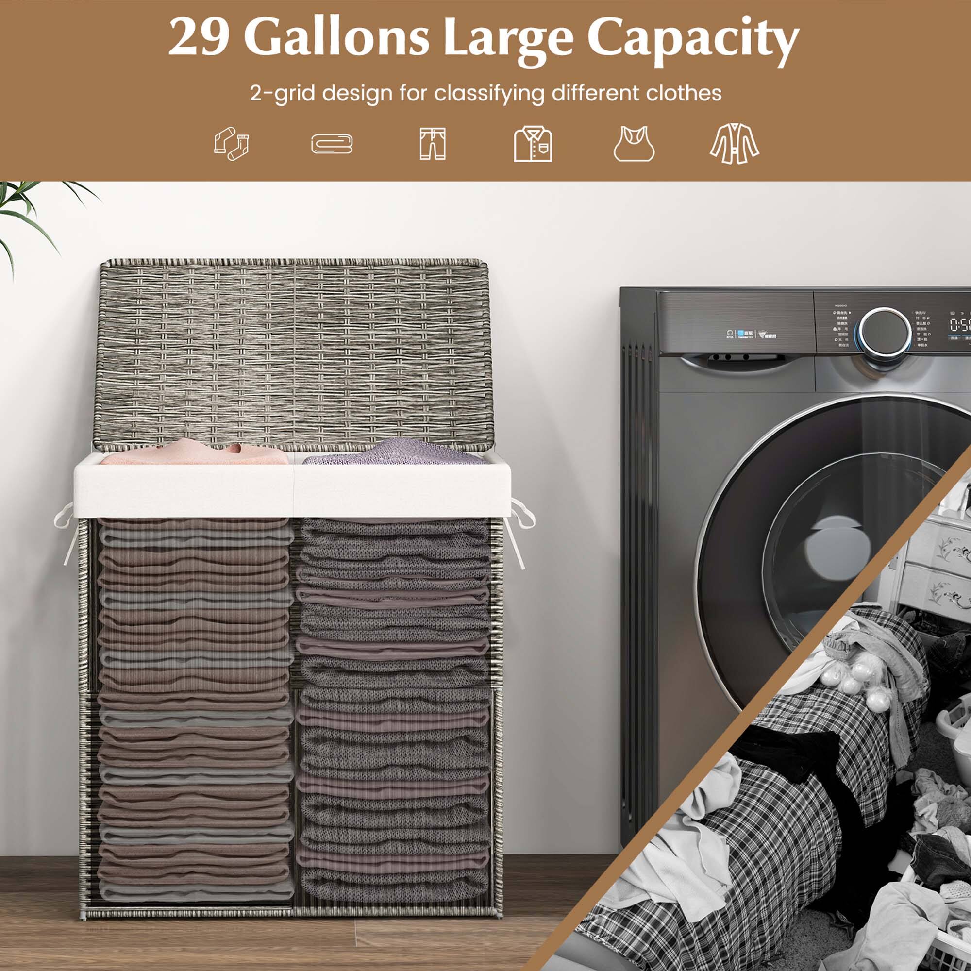 This review is from Costway - Hand-woven Rattan Laundry Hamper with Lid Removable Liner Bag 29-Gallon 2-Section - Gray