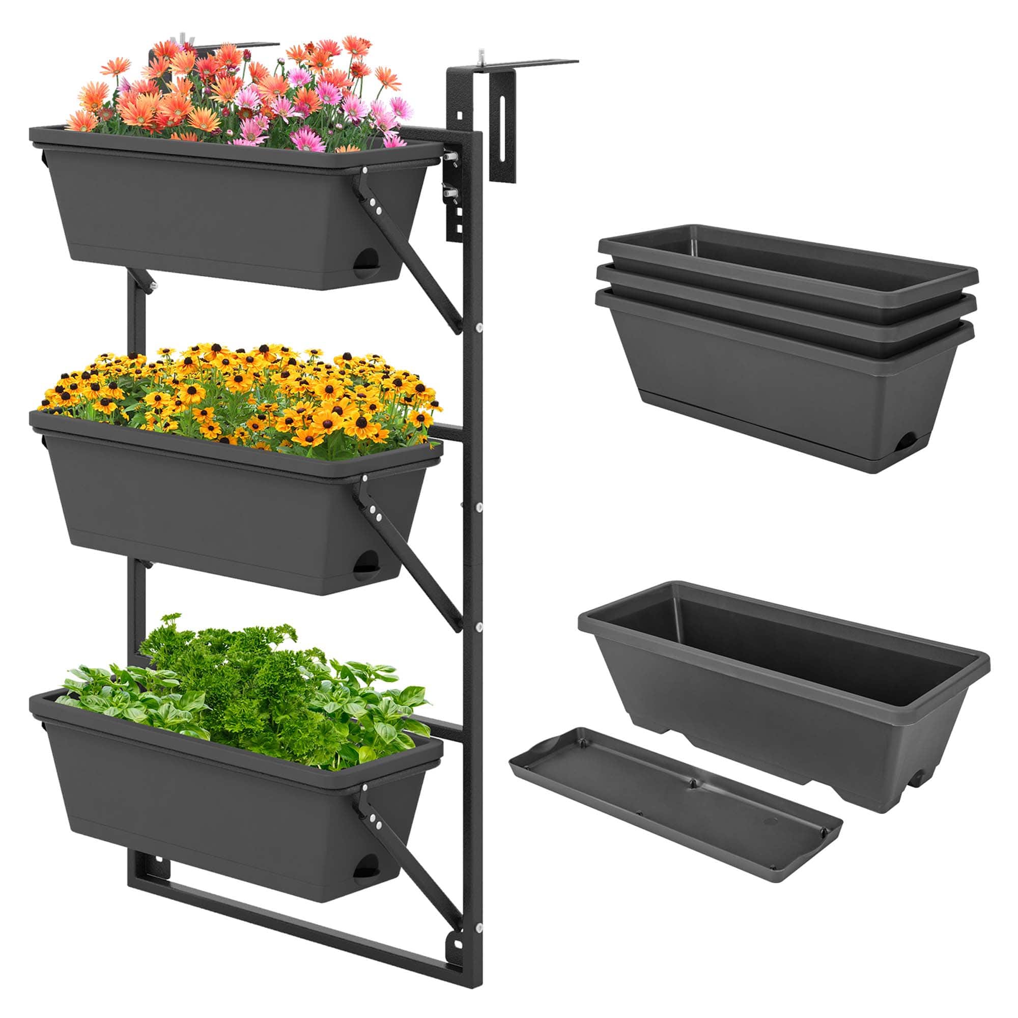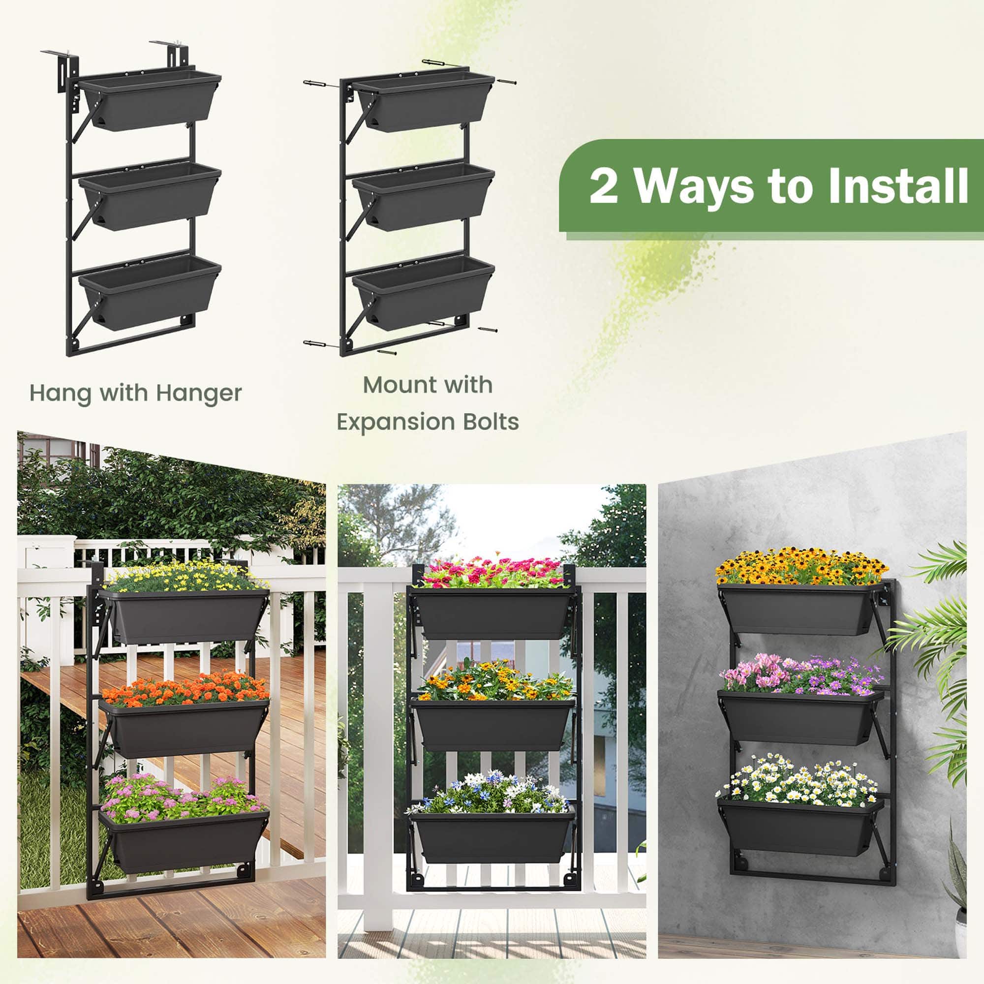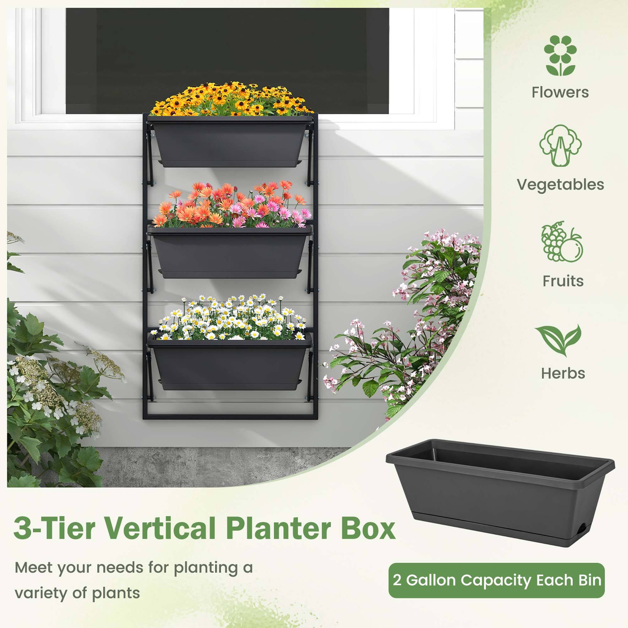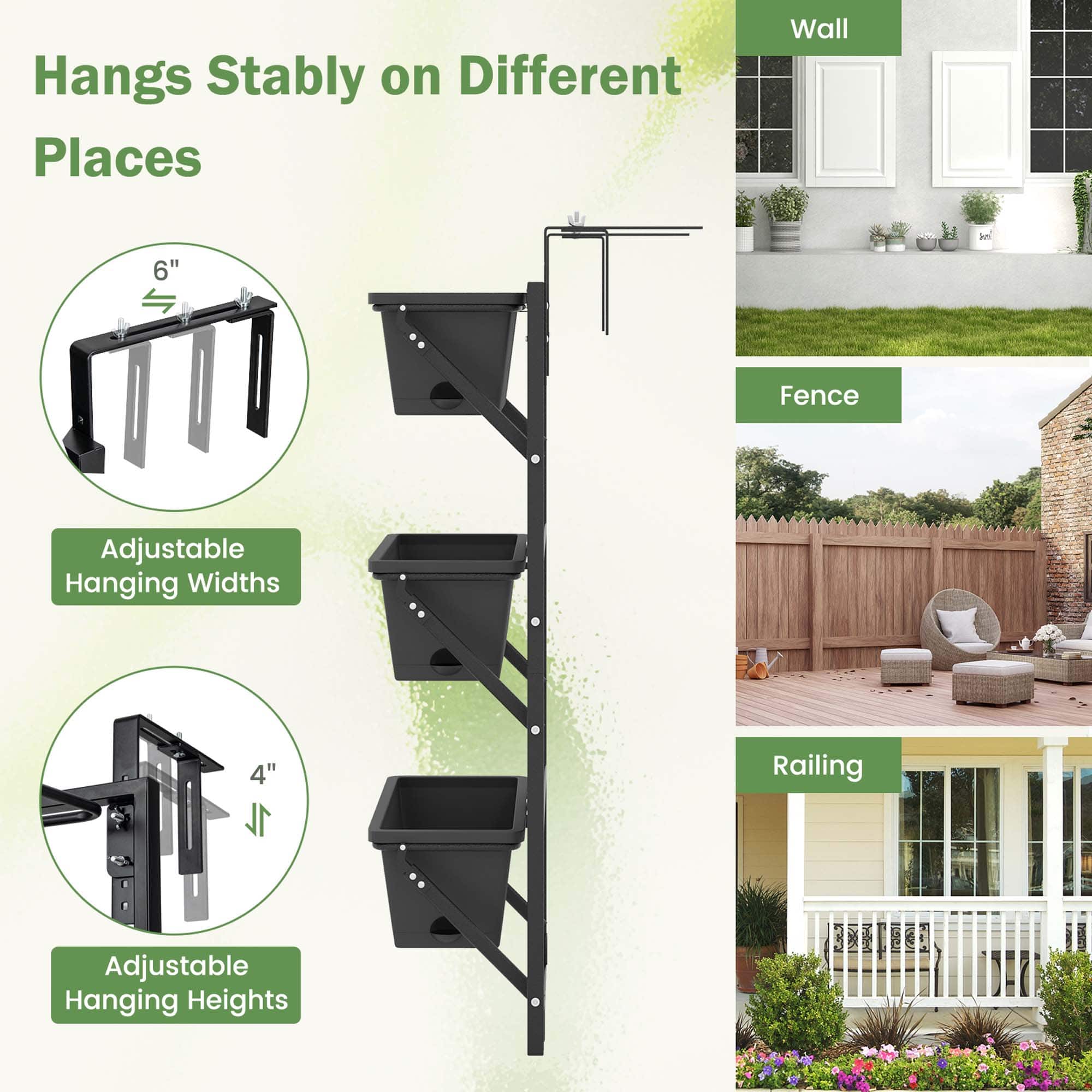This review is from Costway - Hanging Vertical Planter with 3 Planter Boxes & Detachable Hooks for Flowers - Black