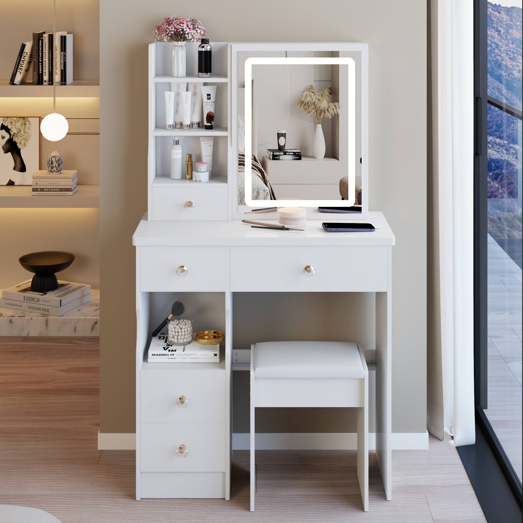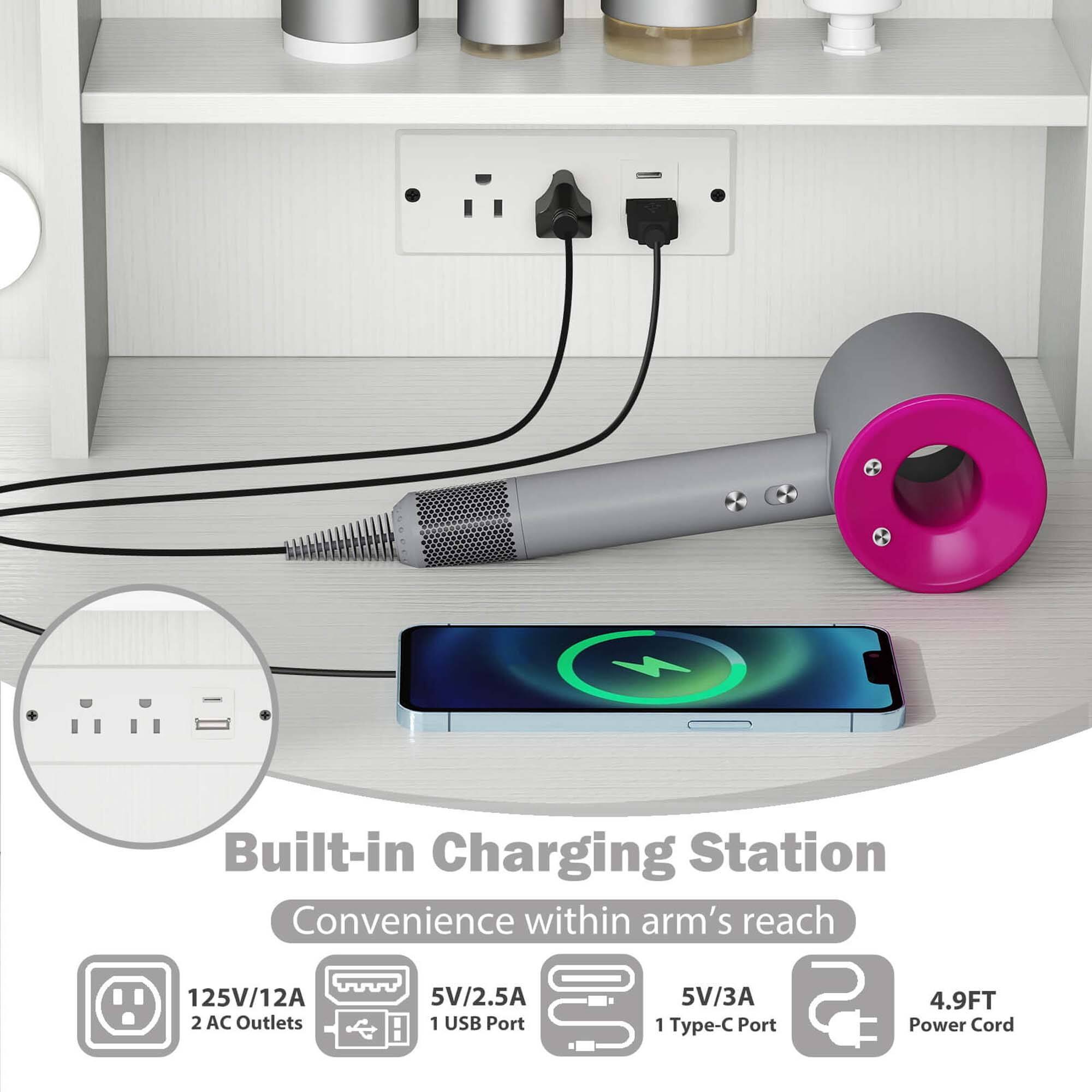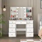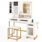 Costway - Vanity Desk Set with Mirror & Lights Power Outlet Cushioned Stool Drawer & Shelves - White$144.99Your price for this item is $144.99$349.99The comparable value for this item is $349.99- $189.99Your price for this item is $189.99
