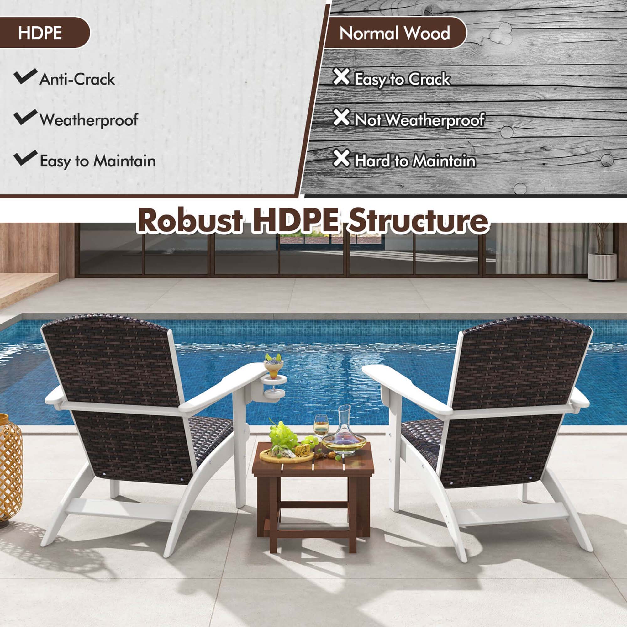 This review is from Costway - Patio Adirondack Chair with Rattan Padded Seat Wide Armrests & Hidden Cupholder - Black,Mix Brown