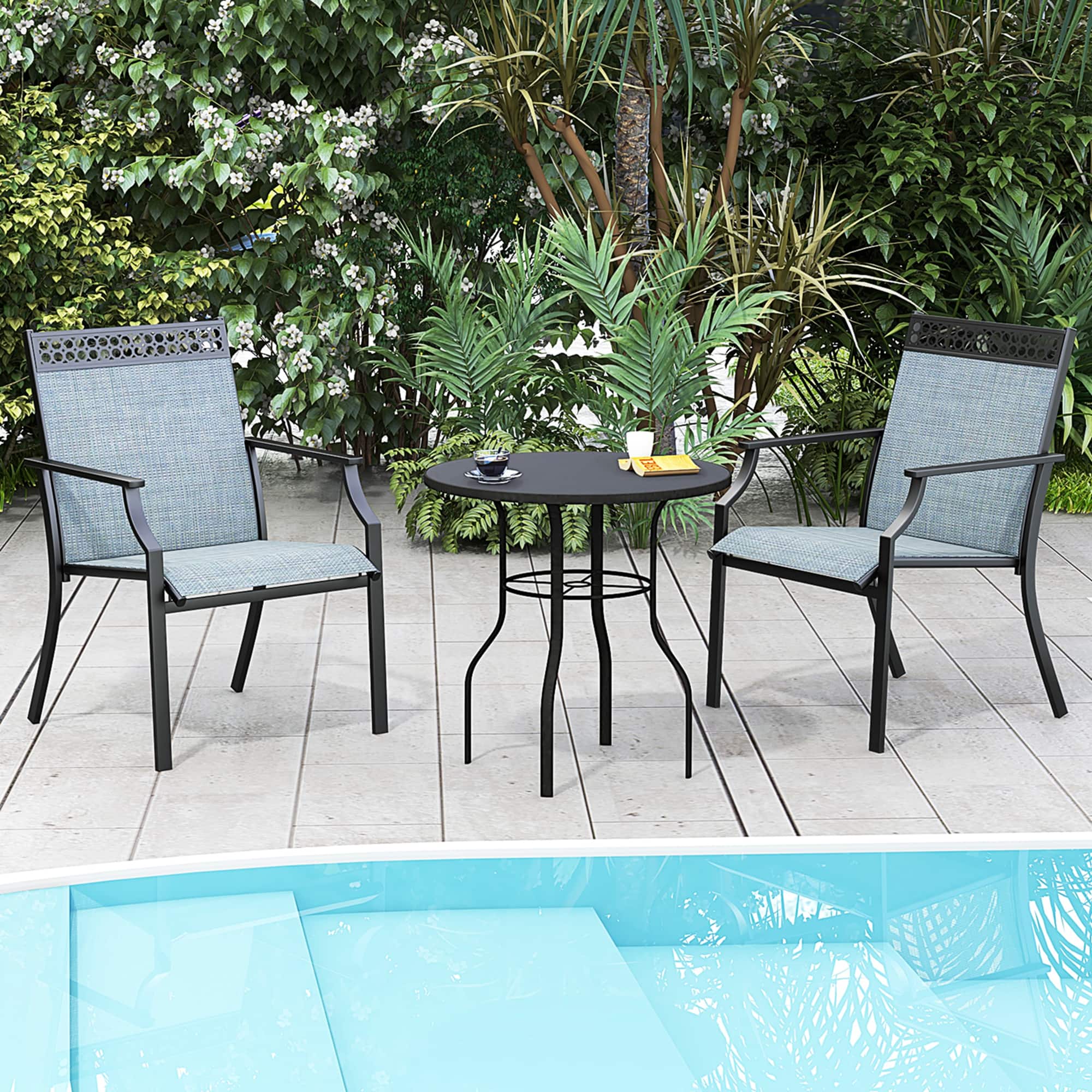 Nice outdoor chairs. Breathable fabric. Different colors to choose from. Suitable for all weather.