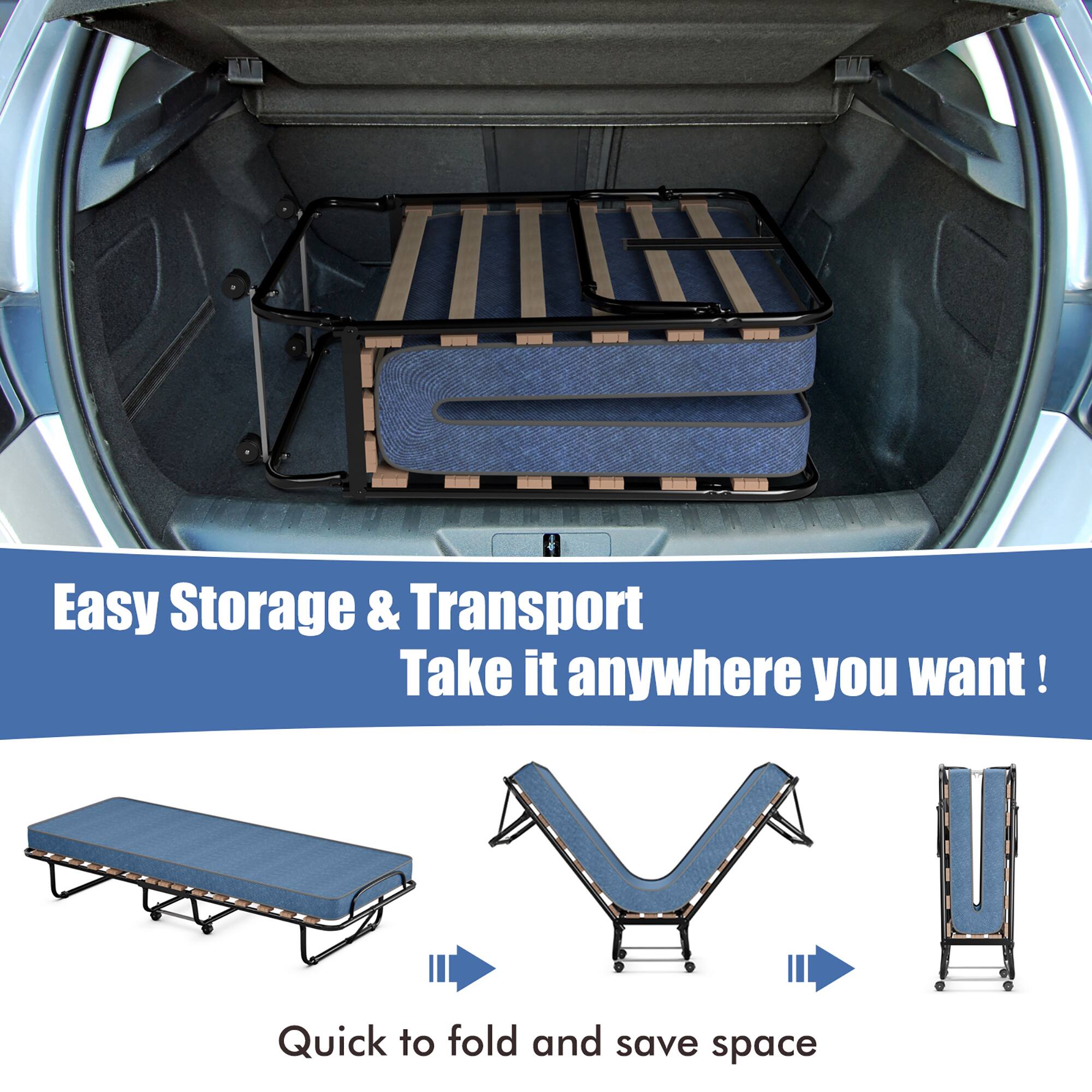 the wheels are terrible. I this cot because air beds are for the young and the air beds pop easily. the instructions for this folding bed are bad, no words just pictures and bad pictures, I think the instructions supposed to cover multiple cot models. I got it assembled and the latch plastic thing that holds the bed in closed position it a super tight fit, I look at the instructions and it has a pic of the latch with a circle and line thru it, like don't use it, why include a part I'm not supposed to use. I used it. It might kill me?!?