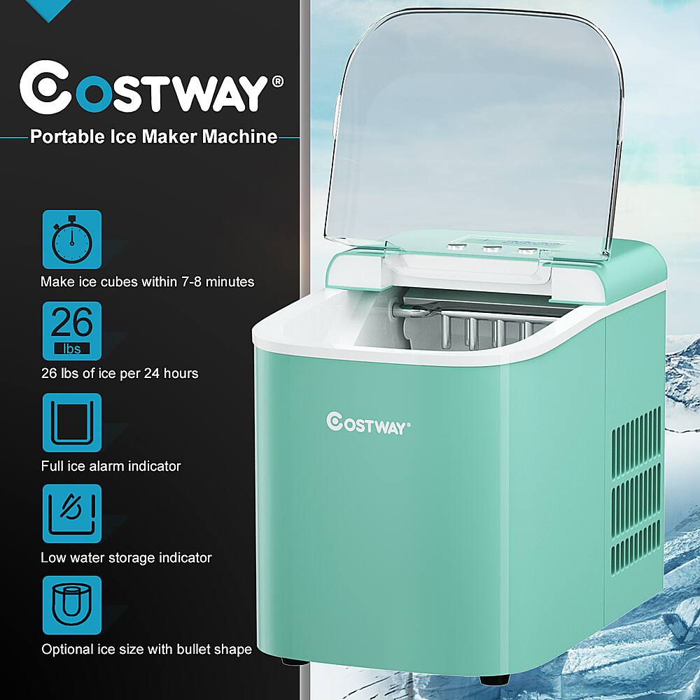 This review is from Costway - Portable Ice Maker Machine Countertop 26LBS/24H LCD Display w/Ice Scoop - Light green
