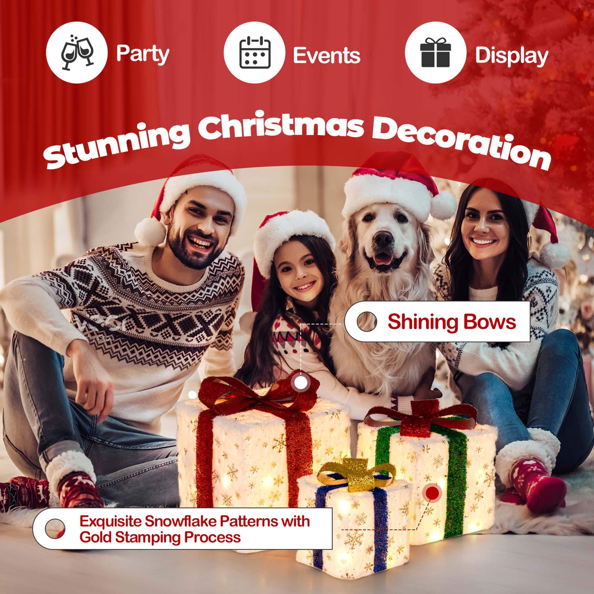 This review is from Costway - Set of 3 Christmas Lighted Gift Boxes Pre-lit Present Decoration with 48 Lights - White/Red/Golden/Green/Blue