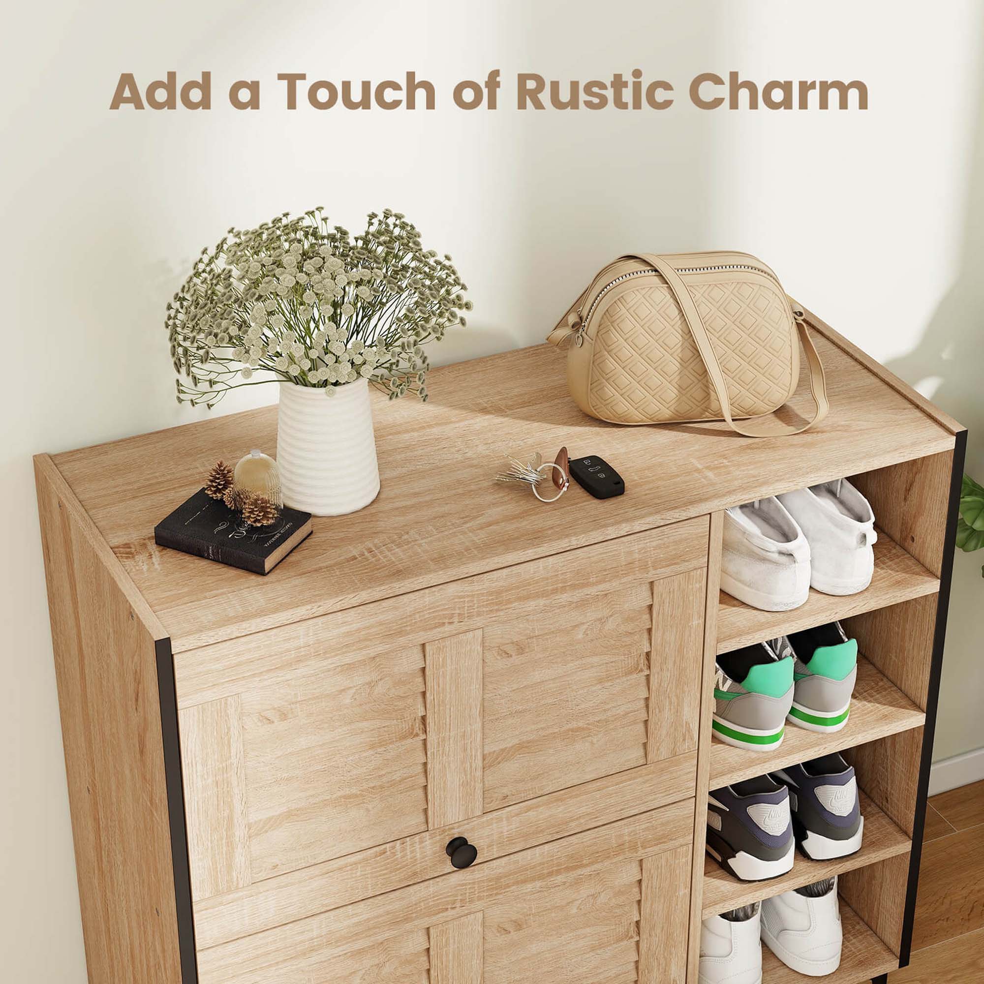 This review is from Costway - Shoe Storage Cabinet with Flip Doors Adjustable and Removable Shelves for Entryway - Oak