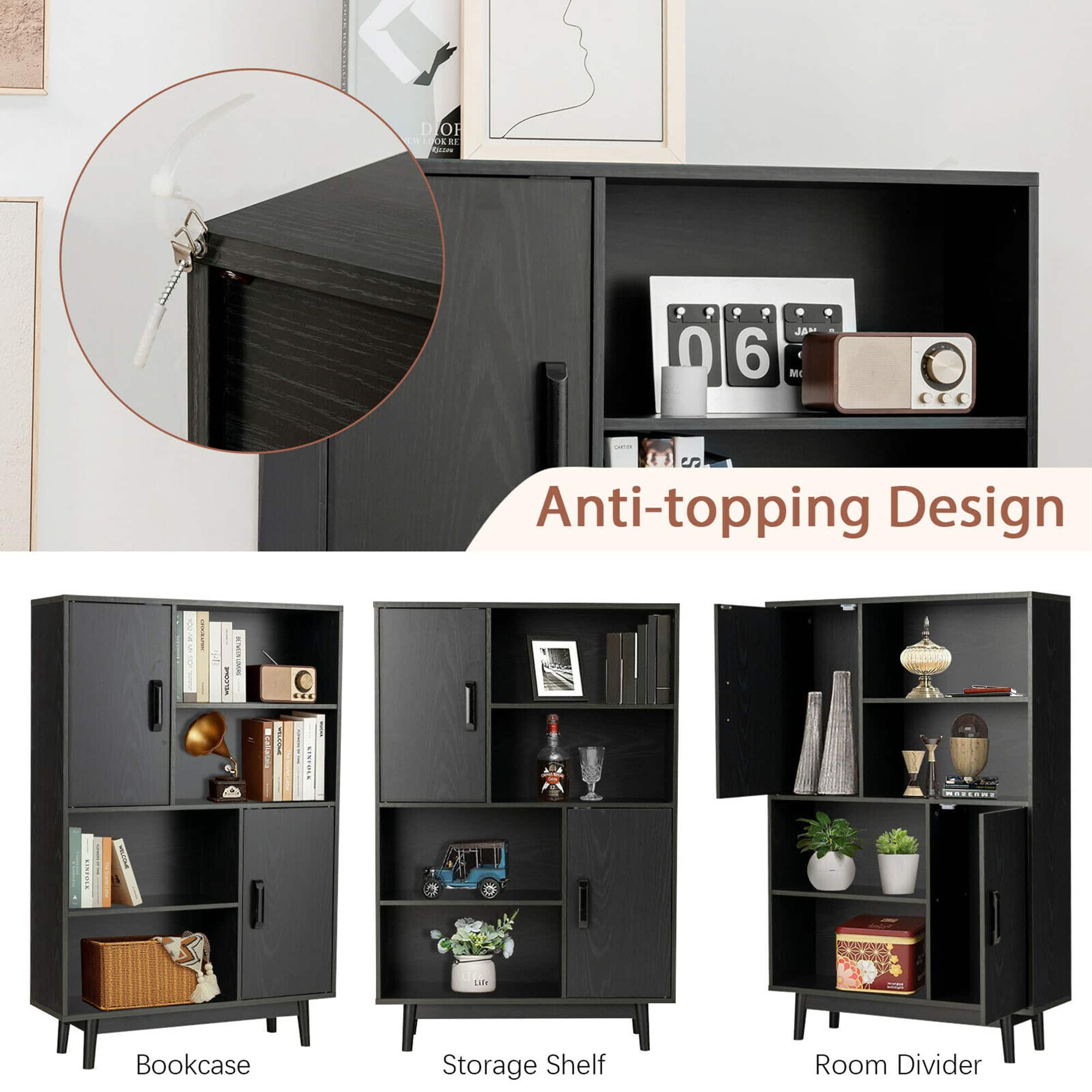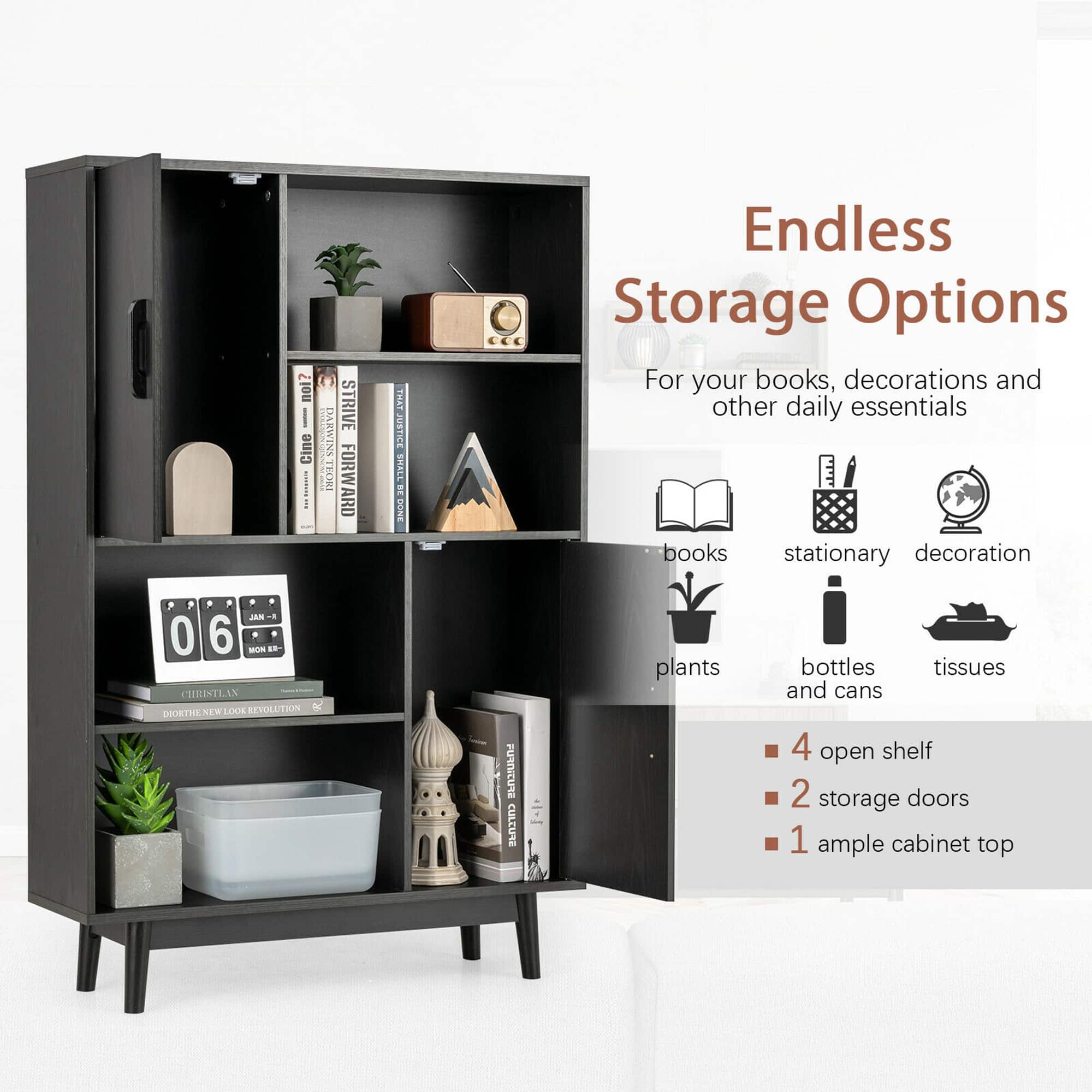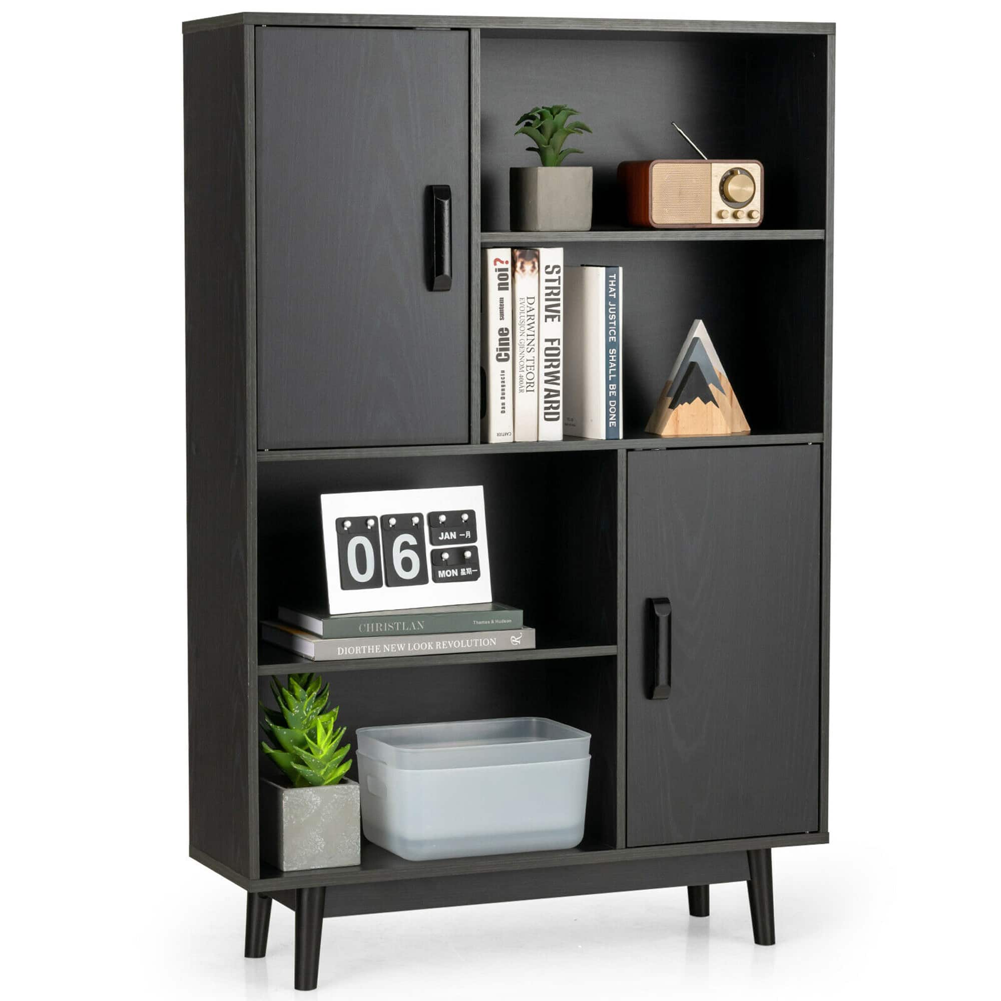 This is a nice solid bookcase with a little extra storage. No complaints about it, it serves its purpose, sturdy, and easy to put together.