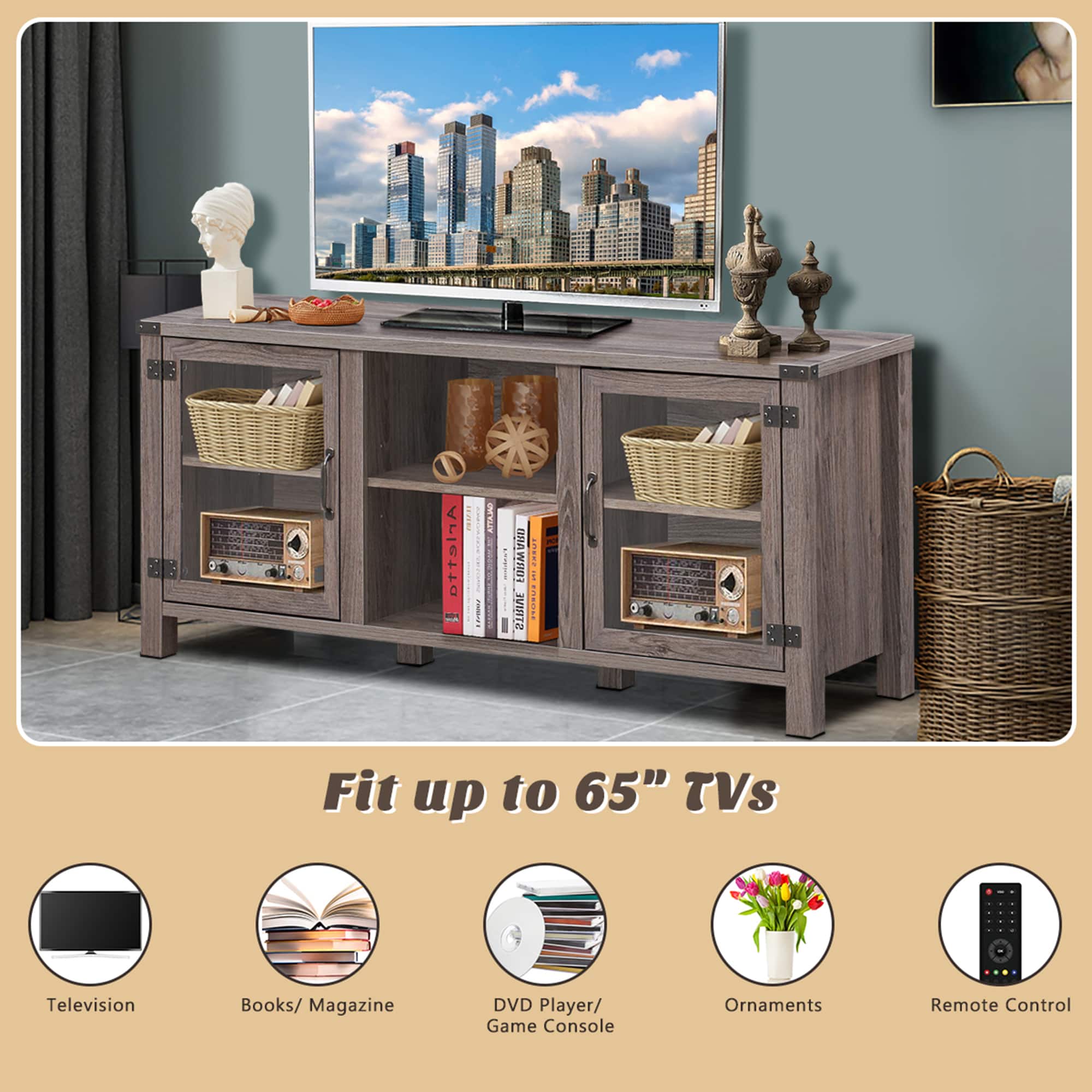 This review is from Costway - TV Stand Entertainment Center for TV's up to 65'' with Storage Cabinets - Deep Taupe