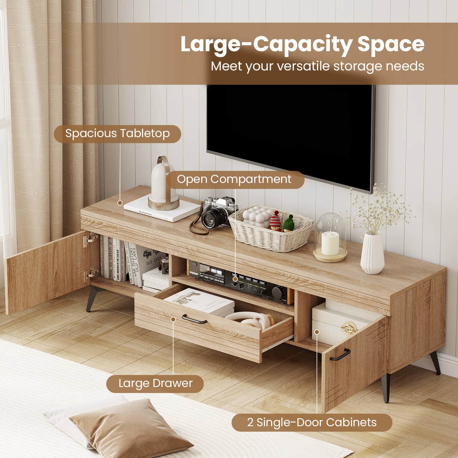 Finally a nice TV stand for my big TV… was a great fit to a narrow room