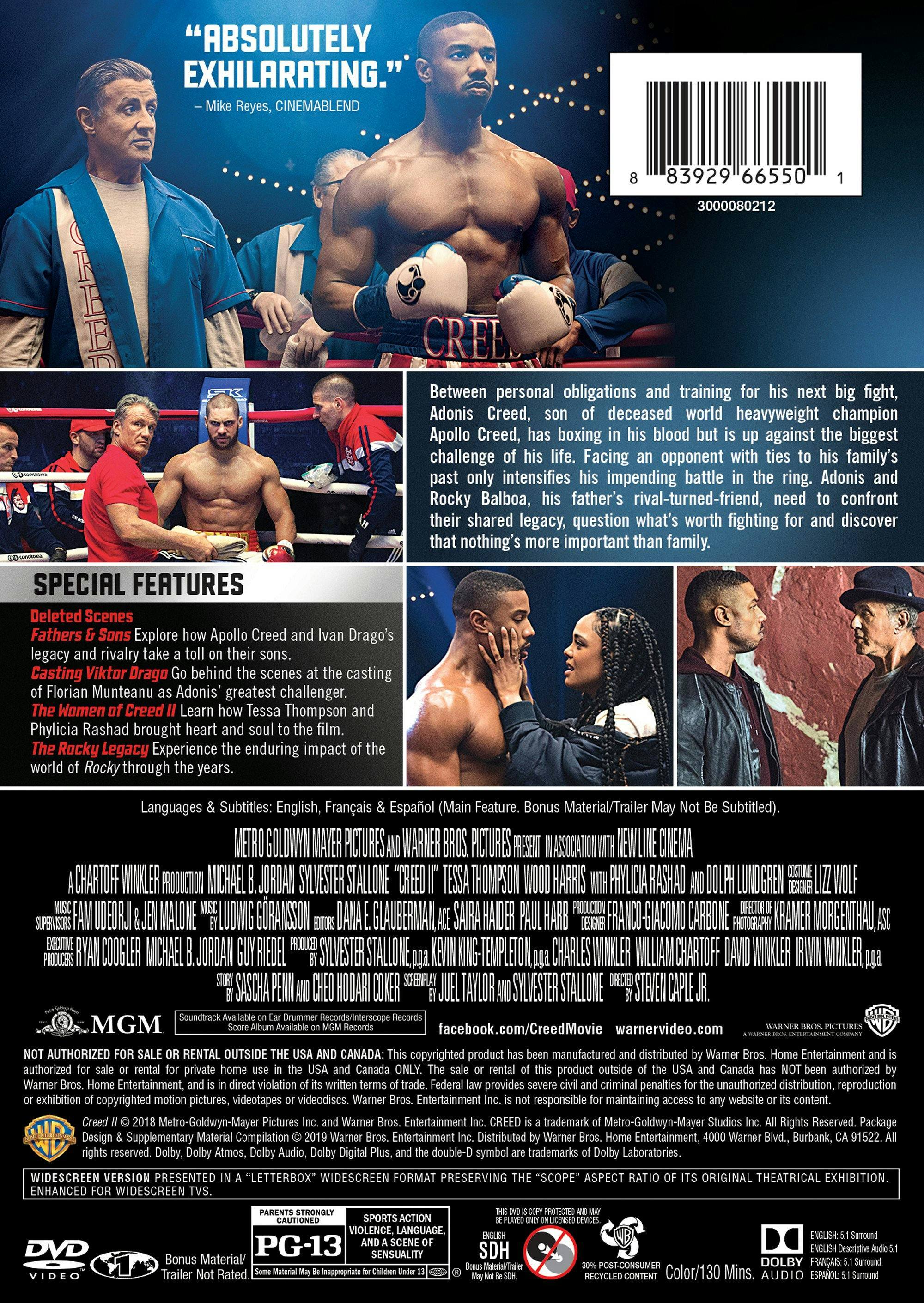 What a great sequel great story good written characters I cared about the Other fighters story when you care not just about creed but his opponents that’s a good written story I loved this movie if your a fan of the first creed then this is a must buy if your new to these films check them out worth your time