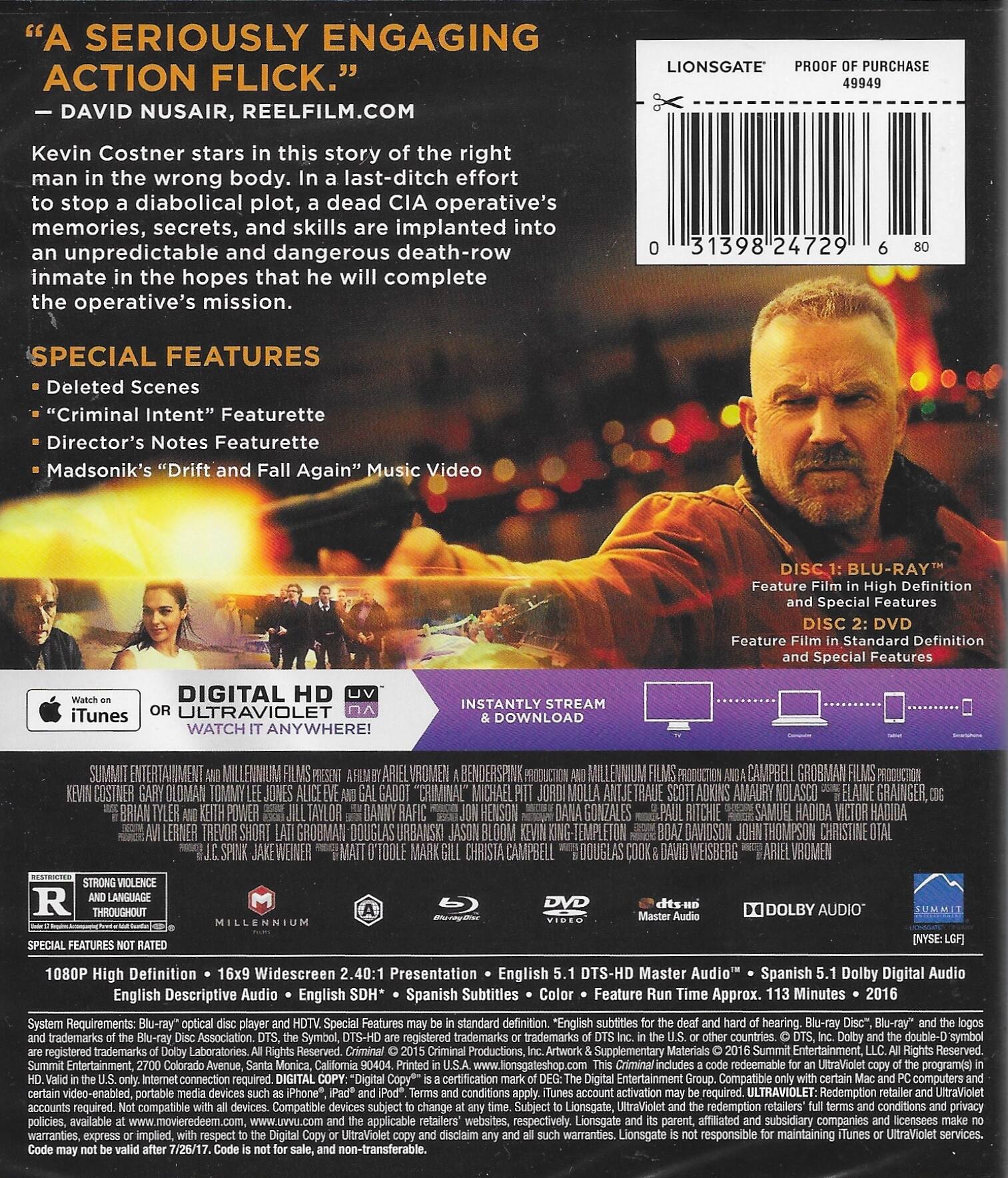 This review is from Criminal [4K Ultra HD Blu-ray/Blu-ray] [2016]
