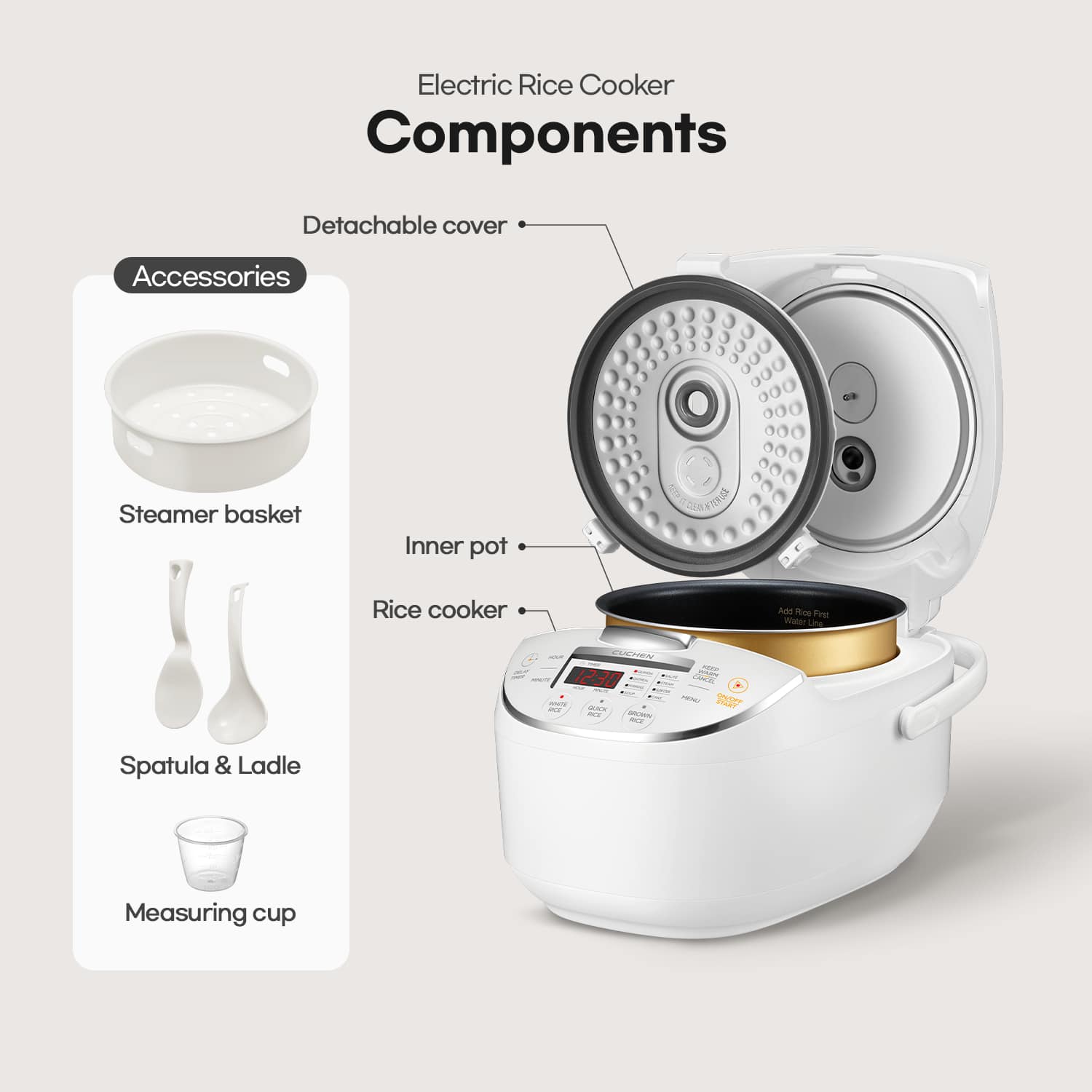The water keep spilling in back to the inner pot so it made the rice soaked. Also the keep warm function is overheating made the rice to thick and dry out the surface the bottom.