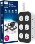 ||Posted . Owned for 2 weeks when reviewed.This reviewer received promo considerations or sweepstakes entry for writing a review.I needed something to protect my recent tv and speaker purchases. In the past I have lost tech to lightning strikes so its definitely important and worth it to have something like this in the house. Nice compact size. The only 2 complaints I have with this particular one is the cord is too short, and the power switch is on the side and not the top, so you can accidently power it off if it rubs against something like a piece of furniture. The LED lights can be turned off thankfully.