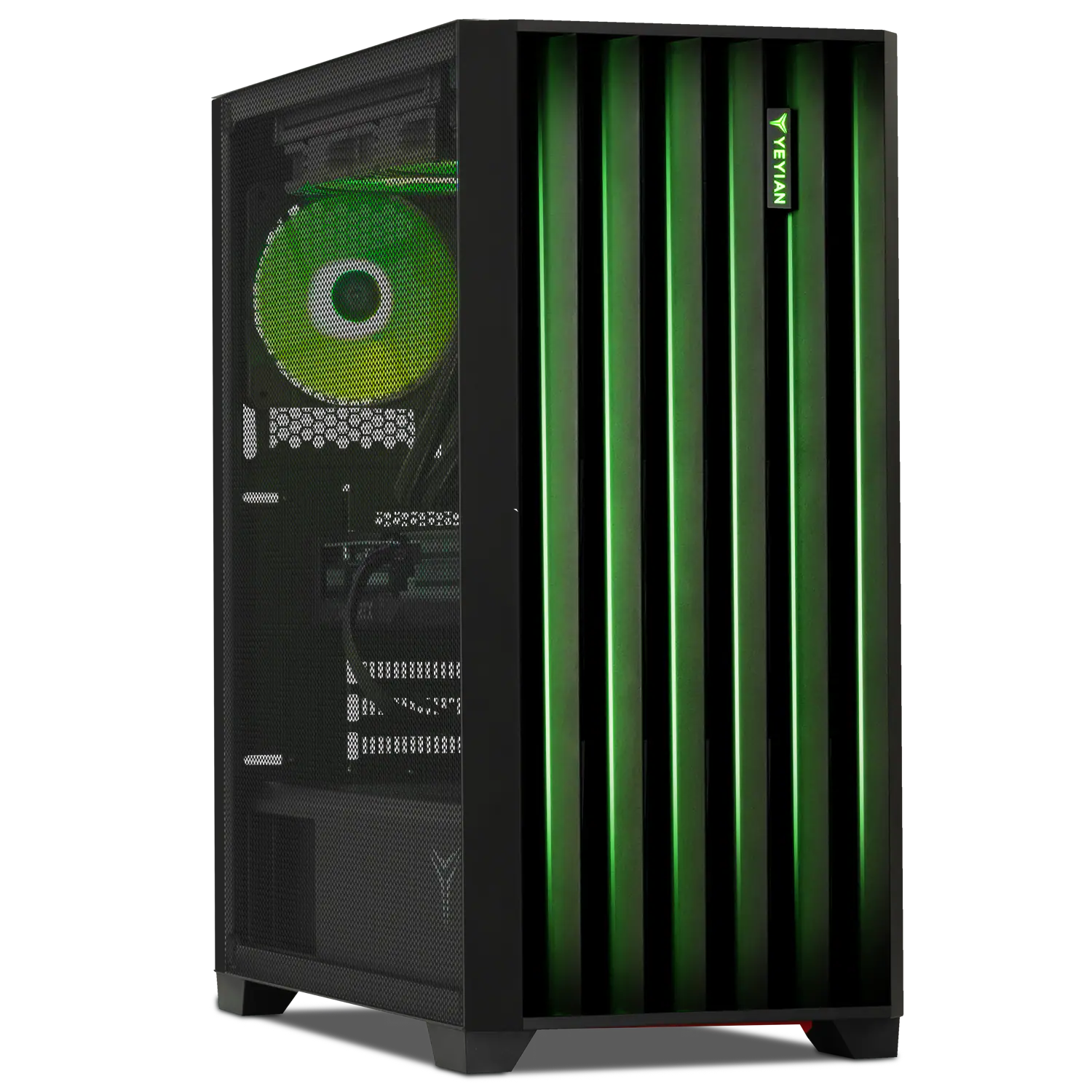 THE PHYSICAL TOWER IS VERY NICE. I LIKE THE BLACK LOOK AND CAN CHANGE THE FAN COLORS TO YOUR LIKING.