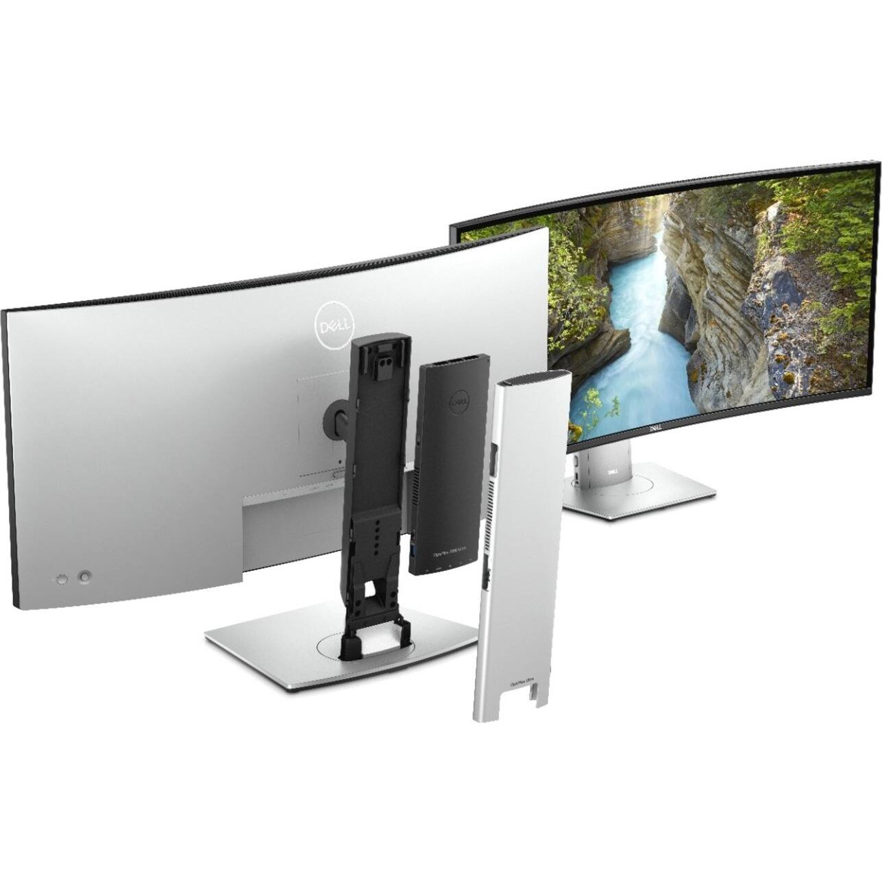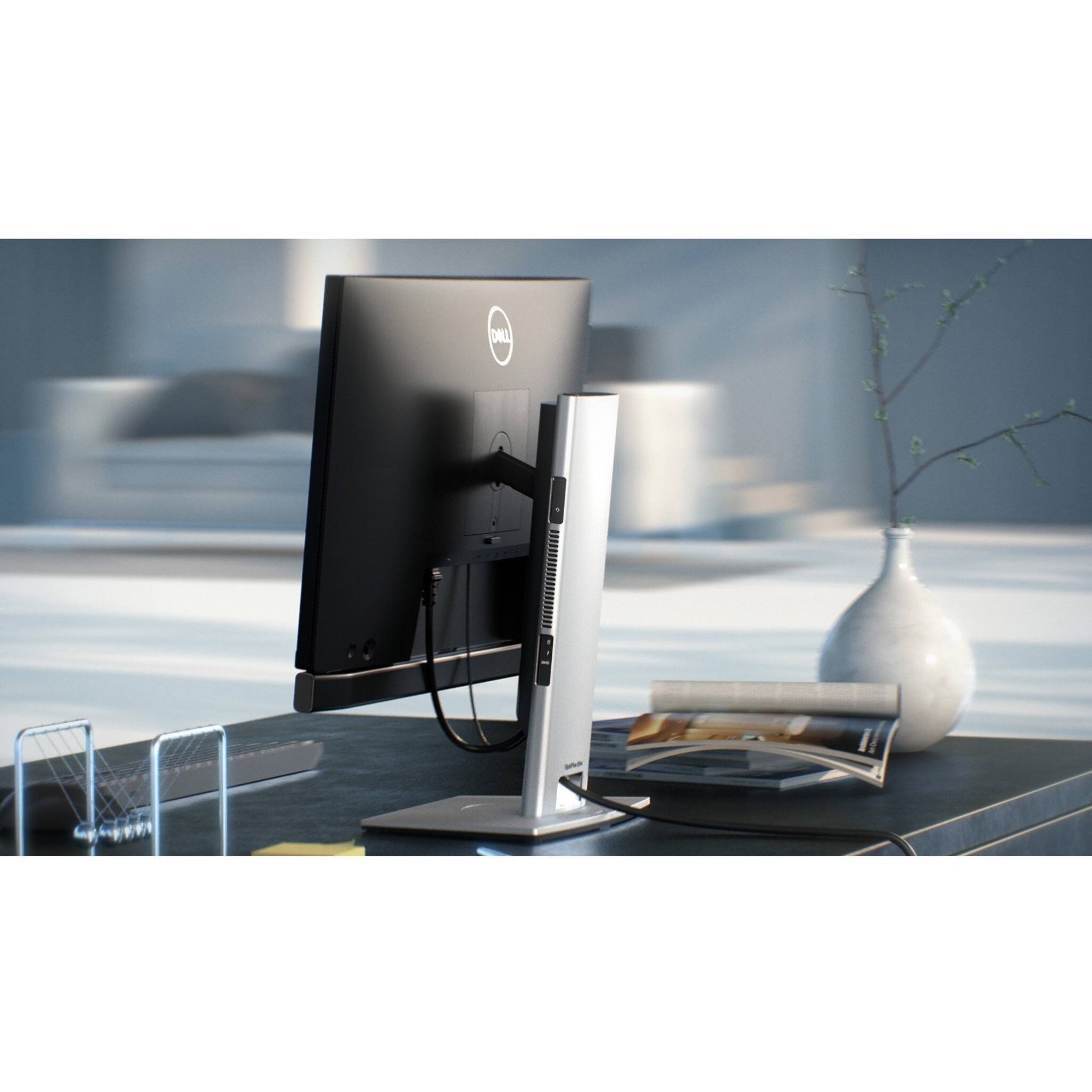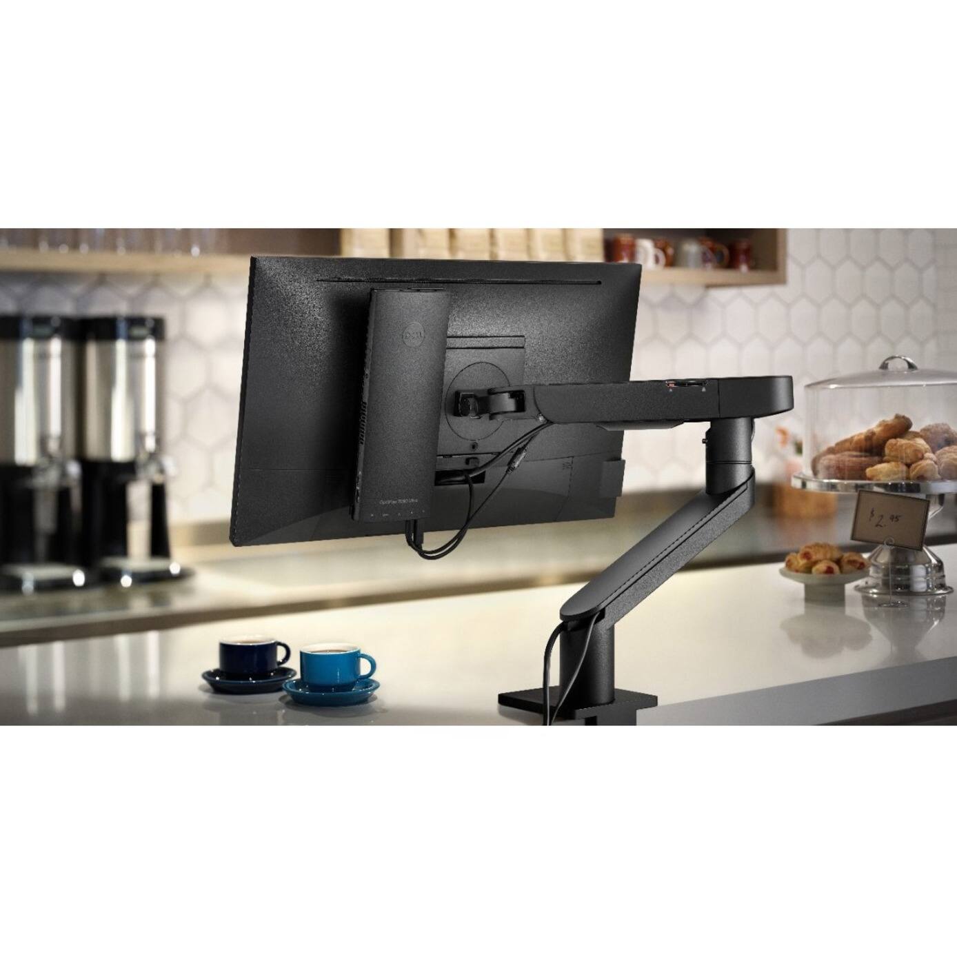 Fits in the stand, no messy wires to attach. Usually, a monitor can power the sytem.
