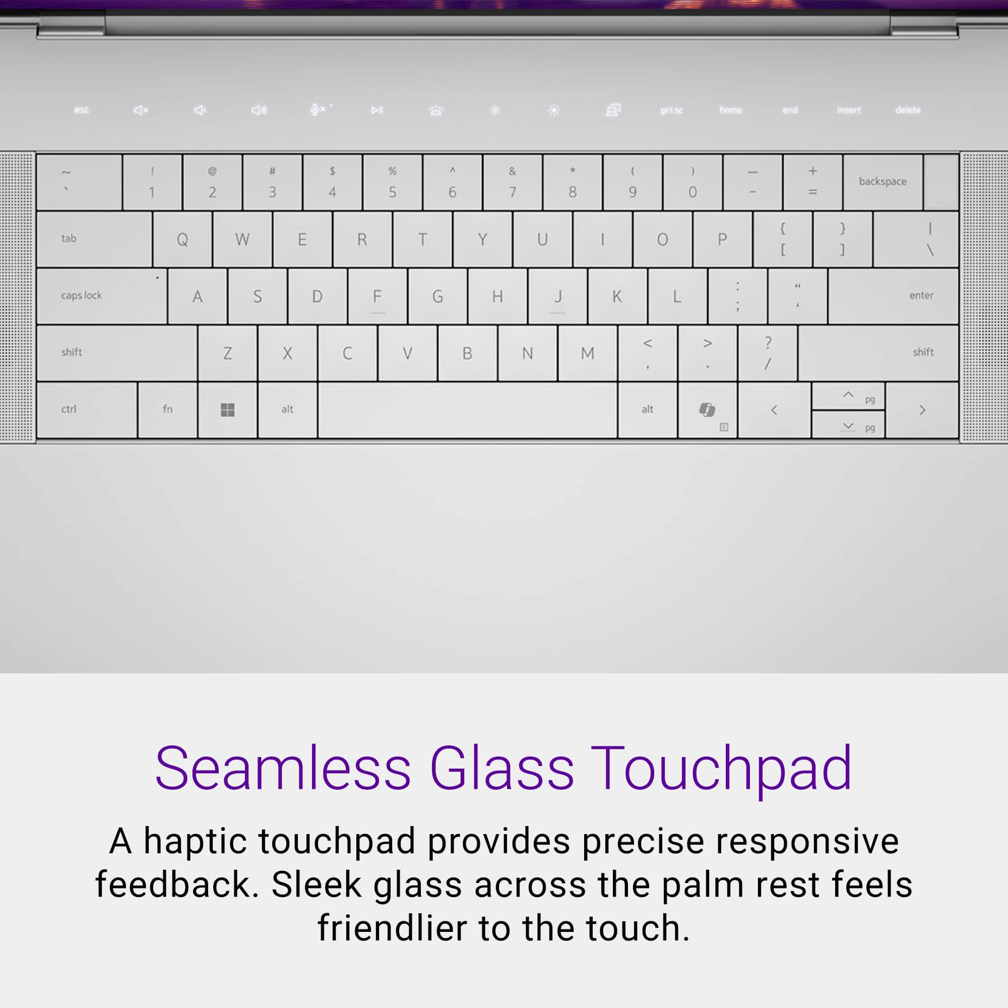 There’s no numeric keypad on this model, which might be a drawback for spreadsheet-heavy users. Also worth noting: the top row of function keys are not physical—they’re backlit touch buttons. They look sleek and respond well, but they do take a little getting used to if you’re coming from a traditional keyboard.