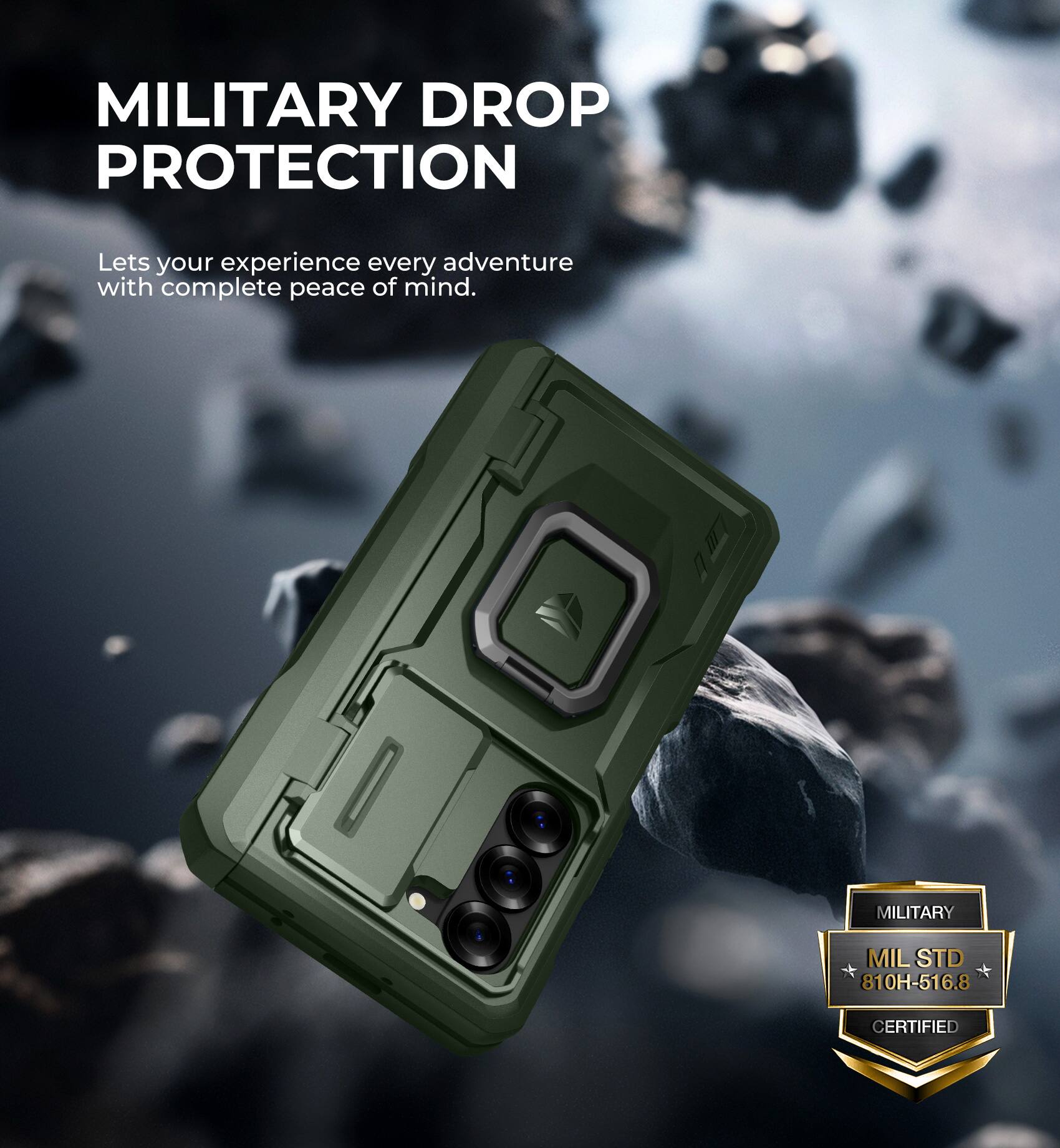 Fully protects the phone. A great case for my husband who is always sticking the phone in a pocket to go riding.