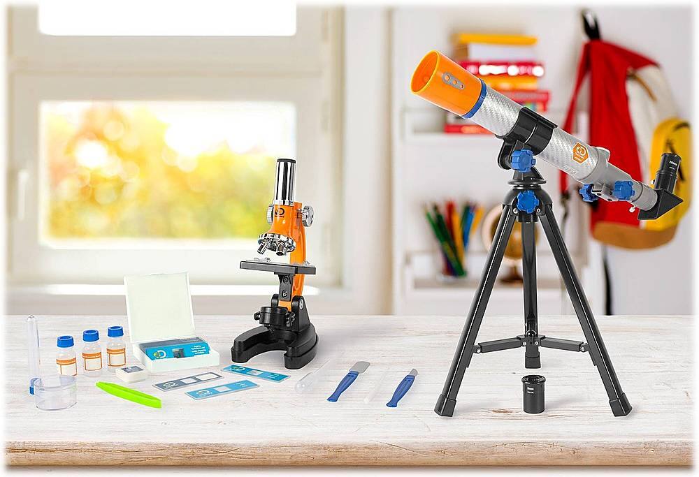 The microscope parts are plastic. The telescope is pretty good. It is alright for the price I was looking for a better quality. Its not so easy for a 6 year old.