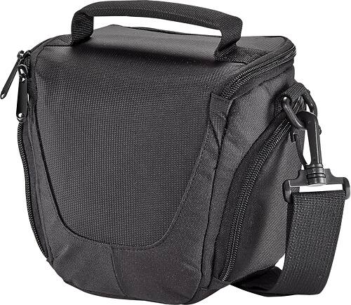 I wanted a basic camera bag to hold my DSLR and found this. It fits my Nikon D3200 with 15-55mm kit lens. It won't hold any lens longer than that. It has side pockets for extra batteries. It is made up of fabric, no plastic on the bottom either so it is very light weight and I wouldn't expect this to offer any drop protection. Shoulder strap is plenty long. Overall, solid purchase for the DSLR.
