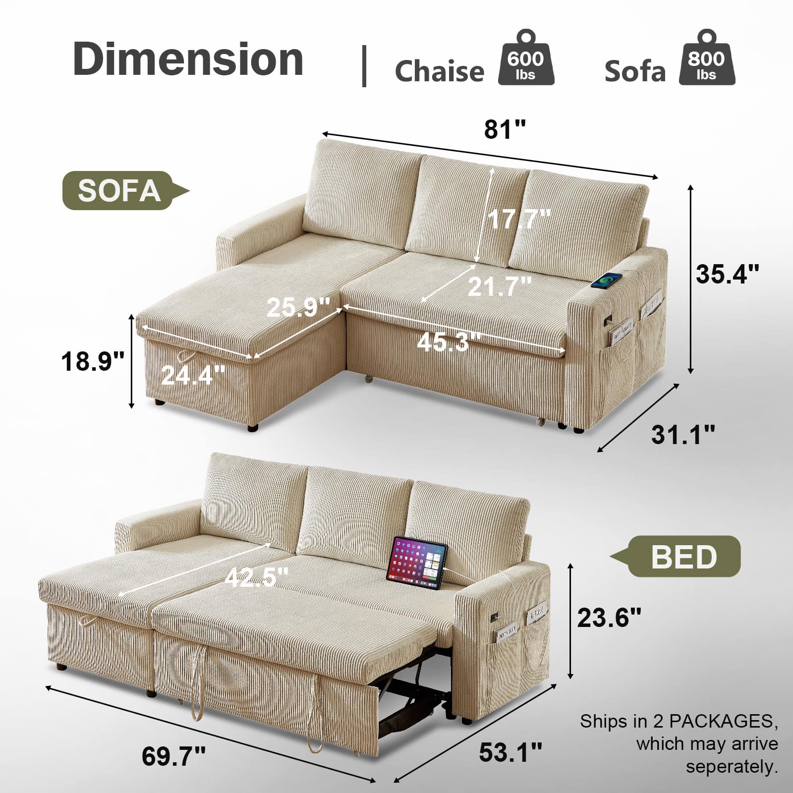 This review is from Dyonery - 81" Sleeper Sofa Bed with Pull Out Bed L Shaped Couch Sectional Sleeper Sofa Dark Gray - Gray