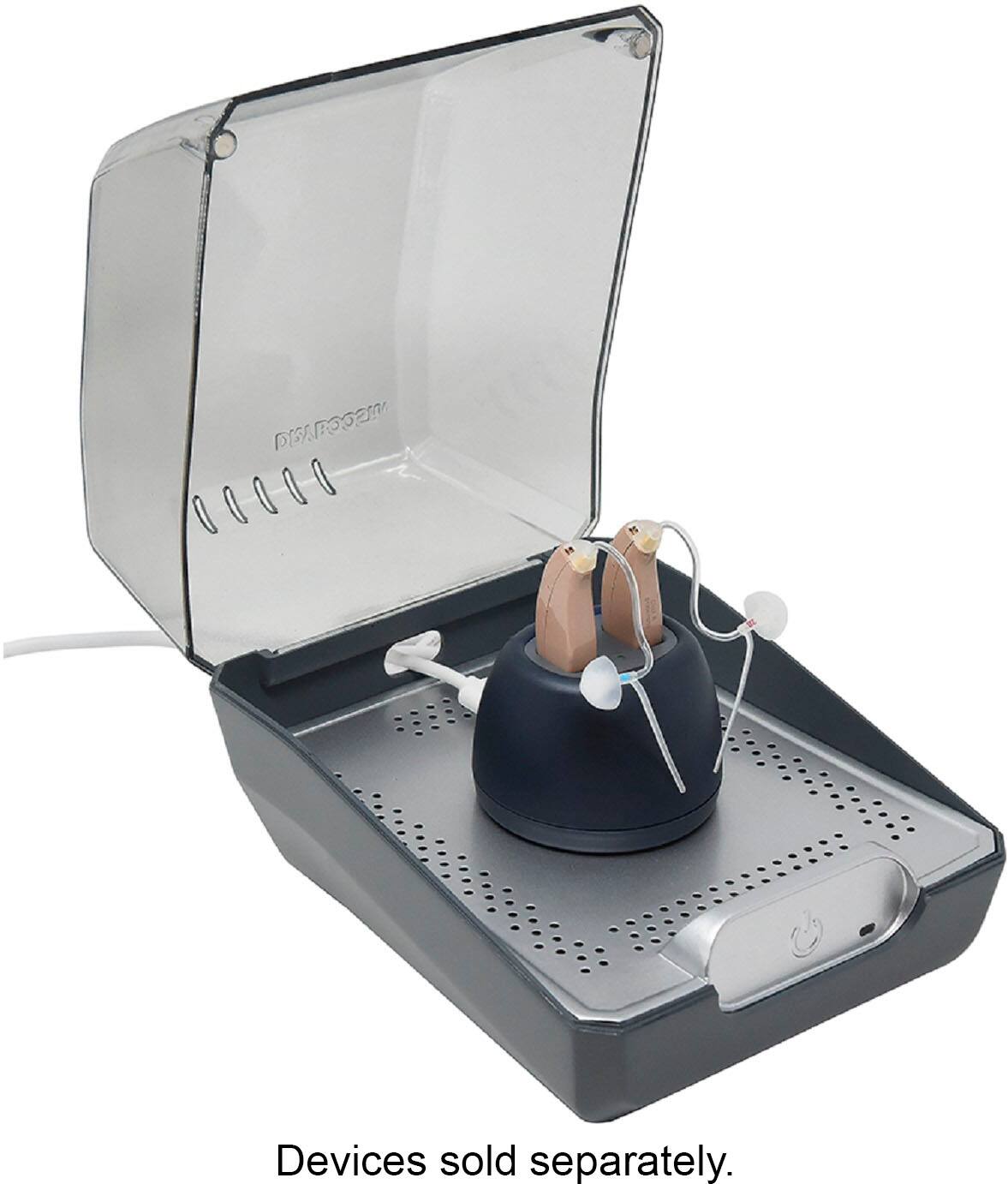 Specifically degisned for hearing aids with non-removable batteries which requries lower temperatures to clean with moving air and UV light. Hearing aids perform better using this machine to charge and remove moisture.