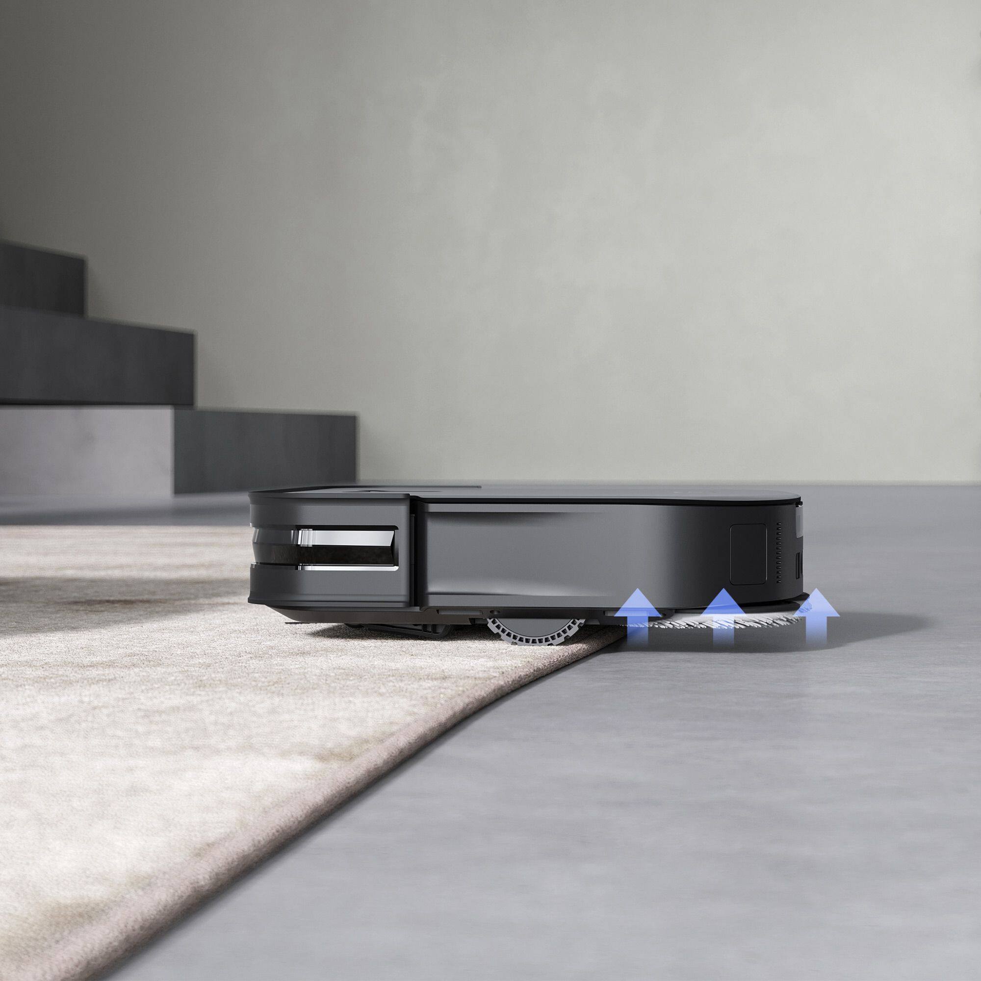 The X2 Omni is an obvious departure from their previous X1 with a new design and mapping approach. Gone is the circular design and spinning lidar in exchange for a lidar sensor that sits along one edge of the device. The result by doing this is a slim robot that can fit and navigate under more furniture allowing it cover even more square footage in your home. There is the usual array of cameras and sensors for cliff detection and carpet detection, as well as navigating around items left on the floor.