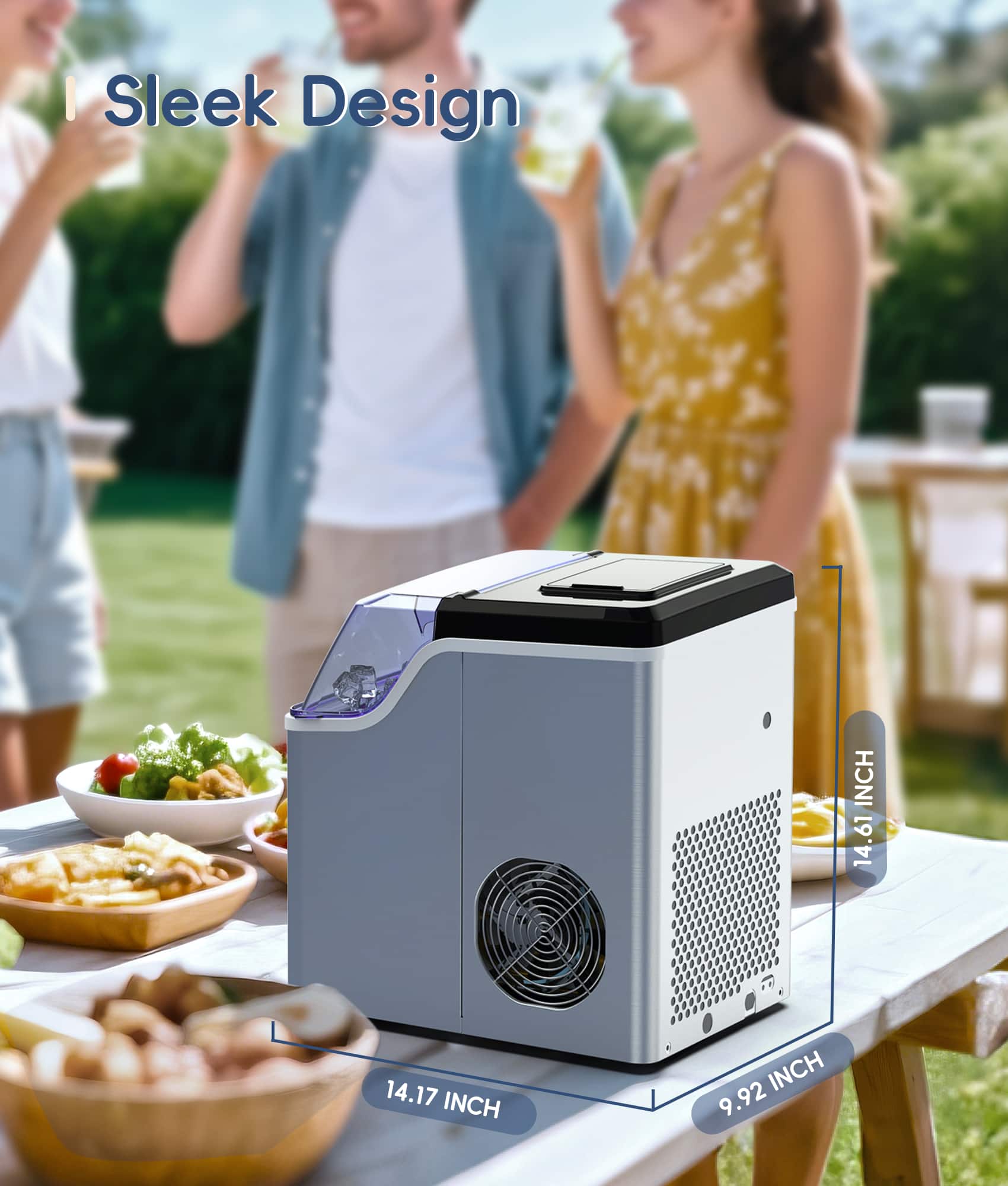 First, the adjustable ice cube size allows you to choose the size and texture of the ice. There are two additional benefits to this: the smaller cube sizes allow each batch to be made faster, and to break apart into individual cubes when released (something not all countertop ice cube makers can do).