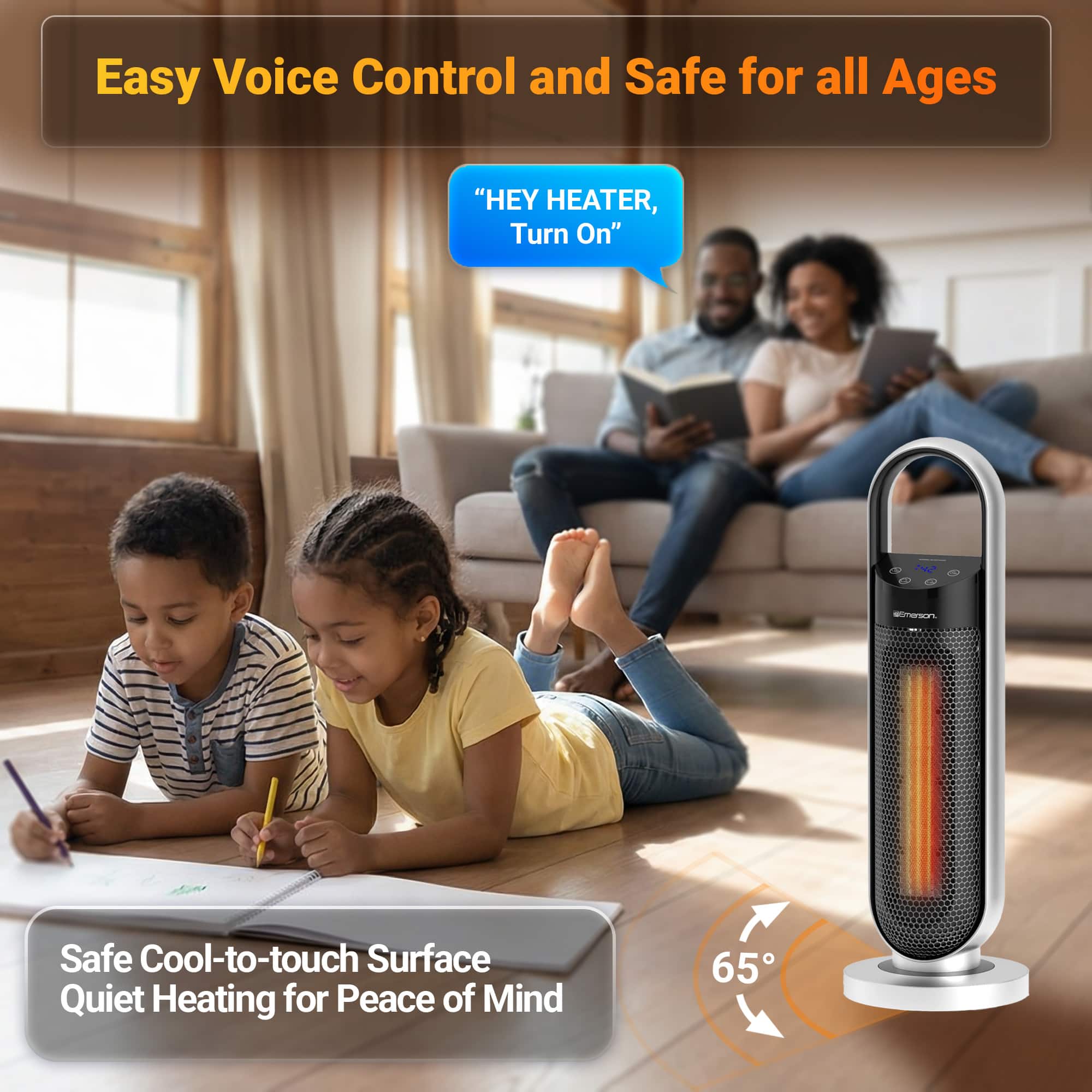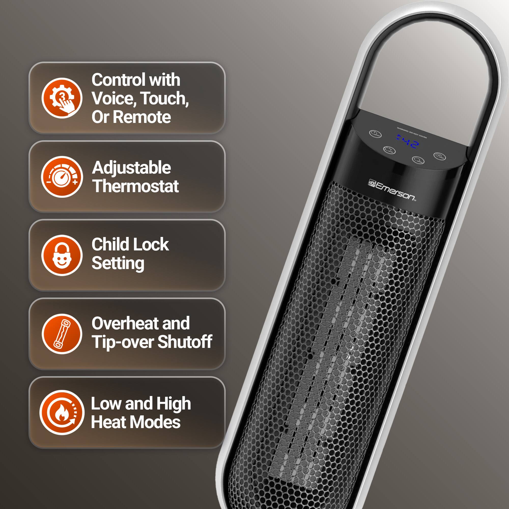 This heater is shorter than my old one, but it definitely packs the same heat. I love the voice command feature because I can change the temperature from across the room without putting down what I’m doing. The remote is a nice backup. Great for small to medium rooms."