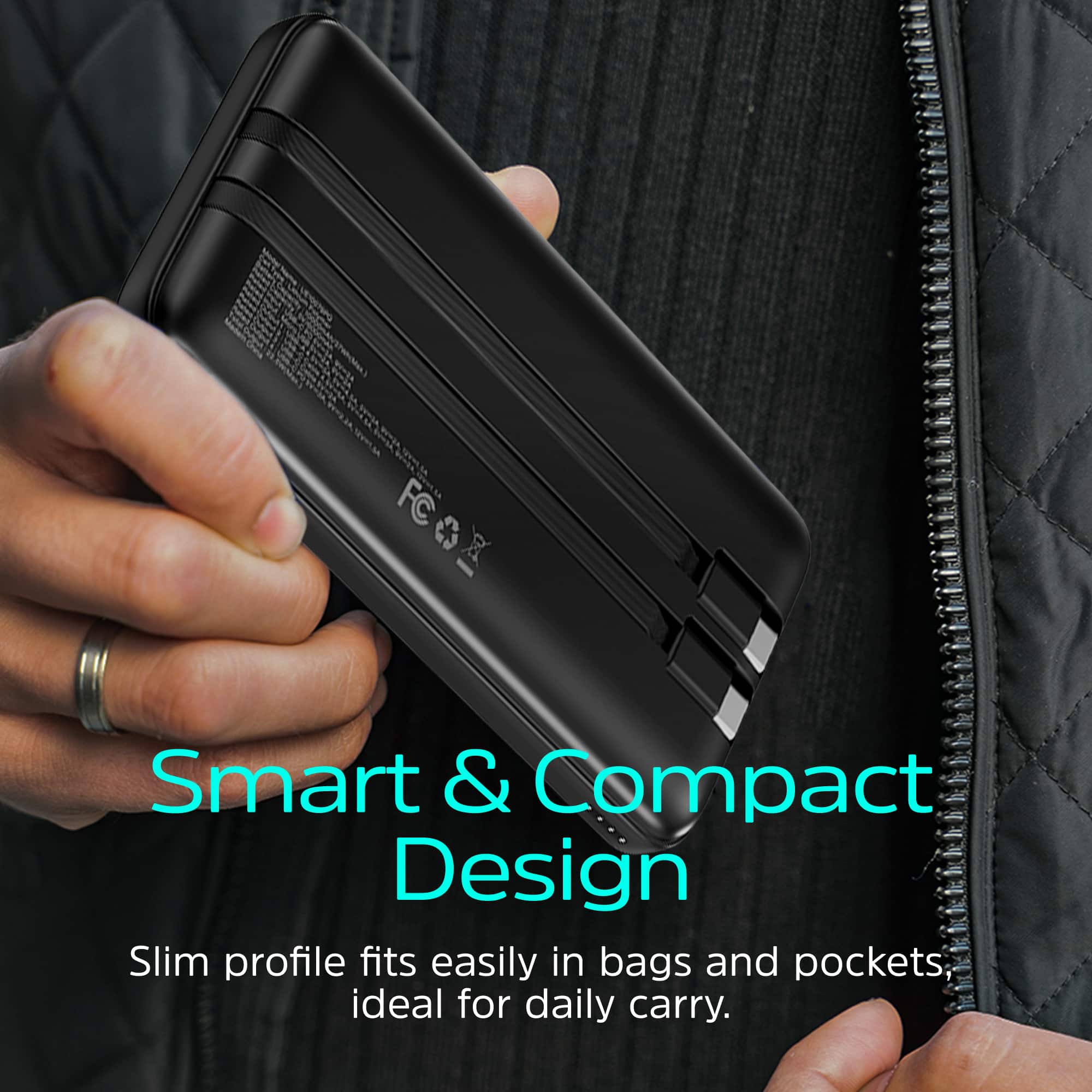 What I love most about this power bank is its versatility and efficiency. Whether I'm traveling or just out and about, I can always count on it to keep my devices powered up. The two built-in cables are incredibly convenient, eliminating the need to carry extra cables with me.
