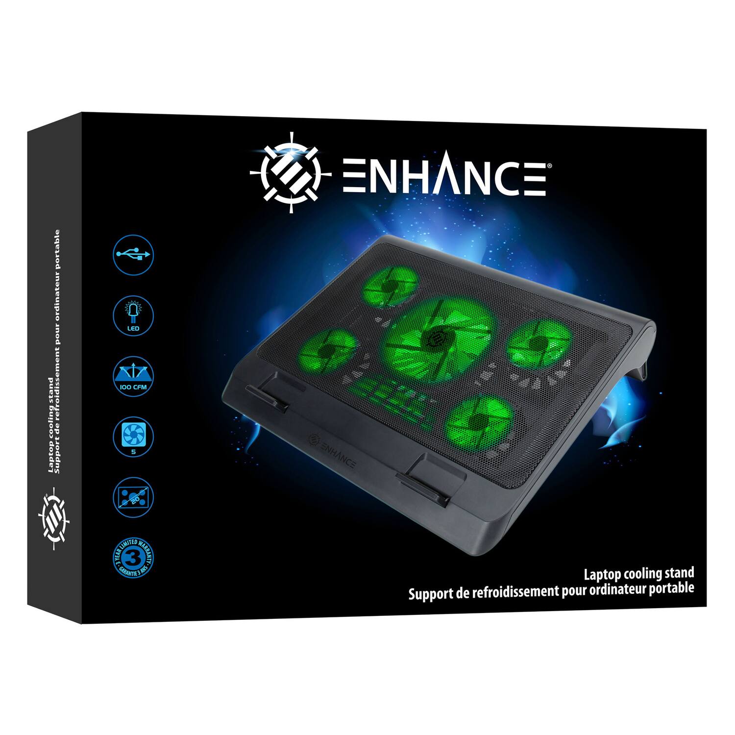 This review is from ENHANCE - Laptop Cooling Stand - 1 x 1264 RPM Fan & 4 x 2630 RPM Fans - 3 Adjustable Height Settings - Up to 17" - Green