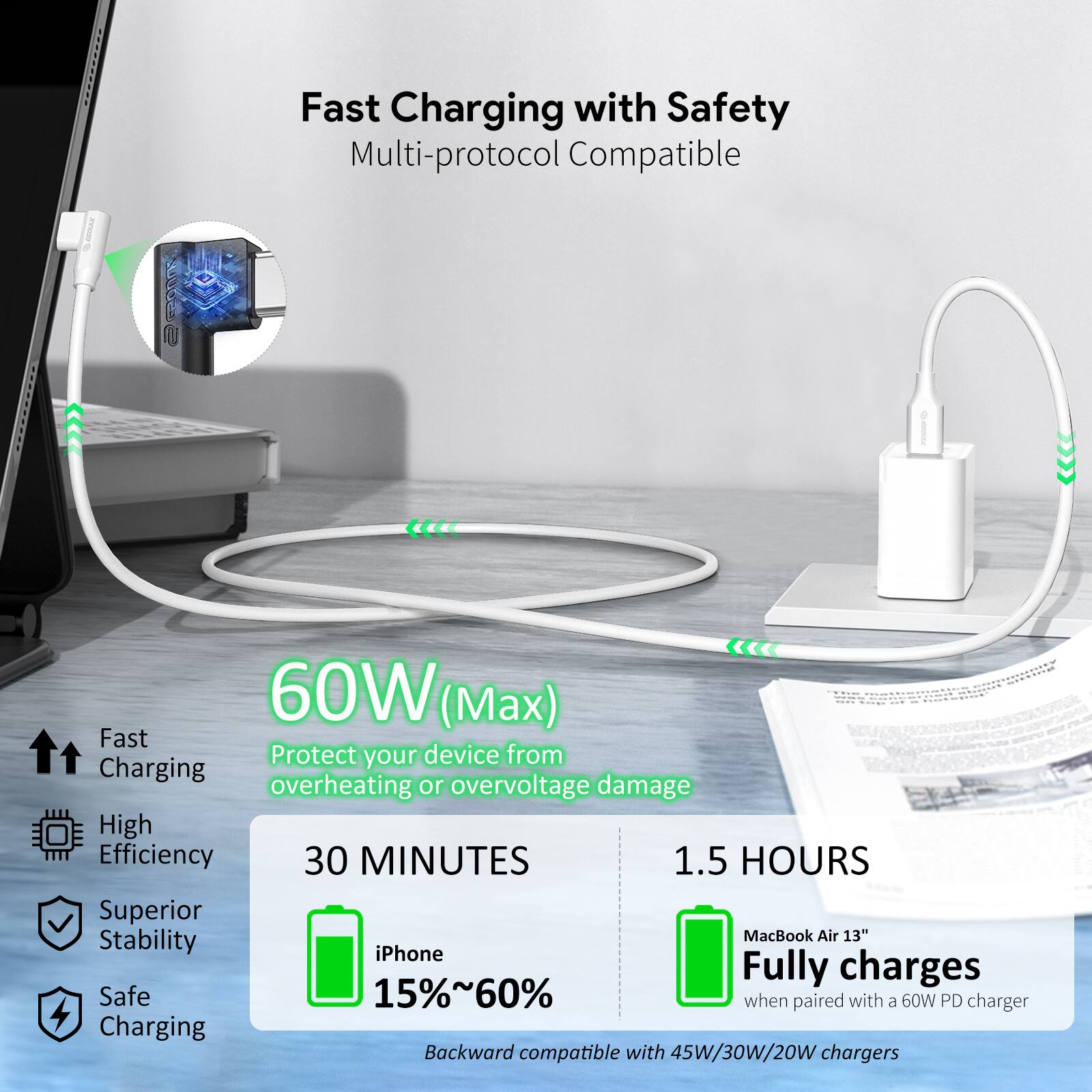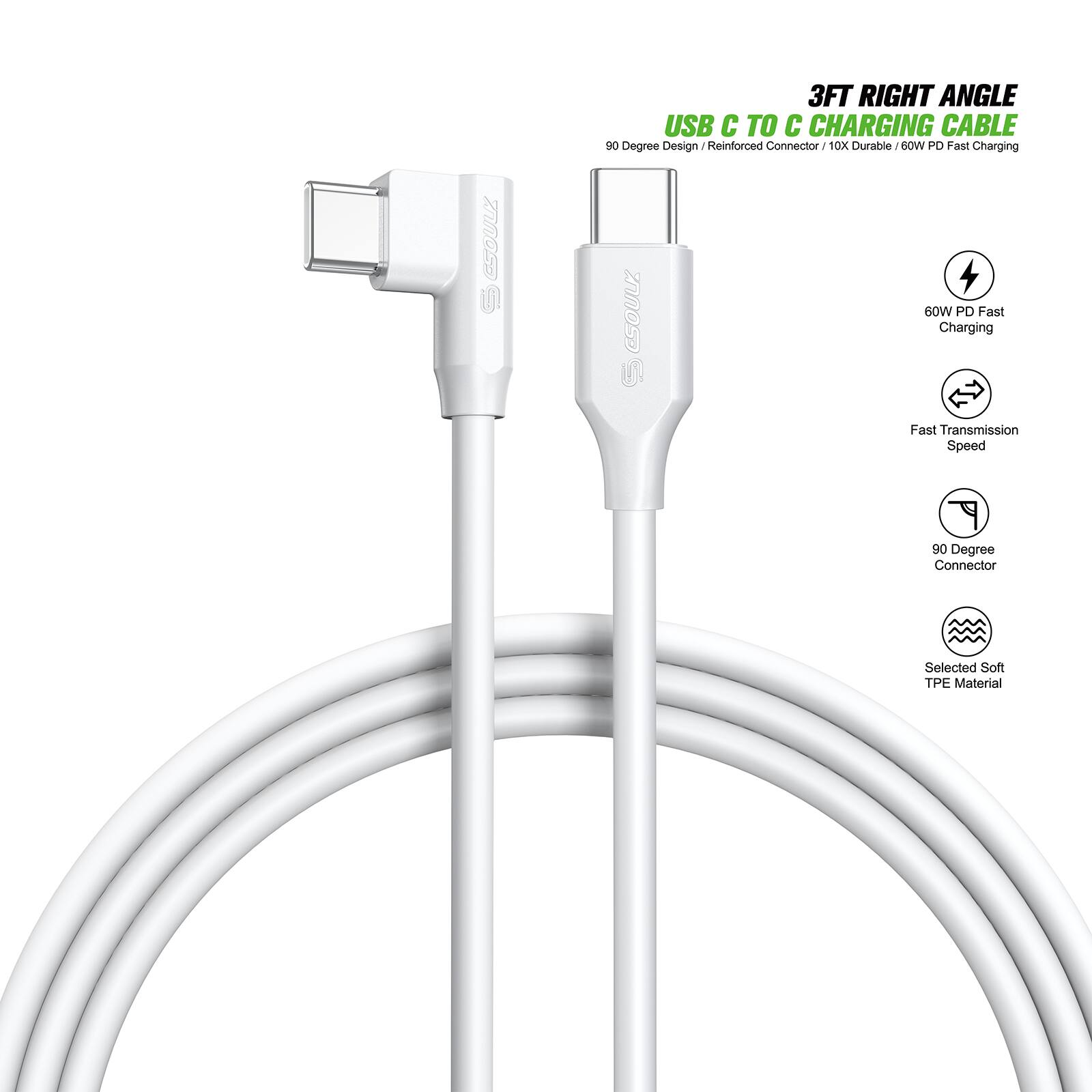 90 degree white usb c to c