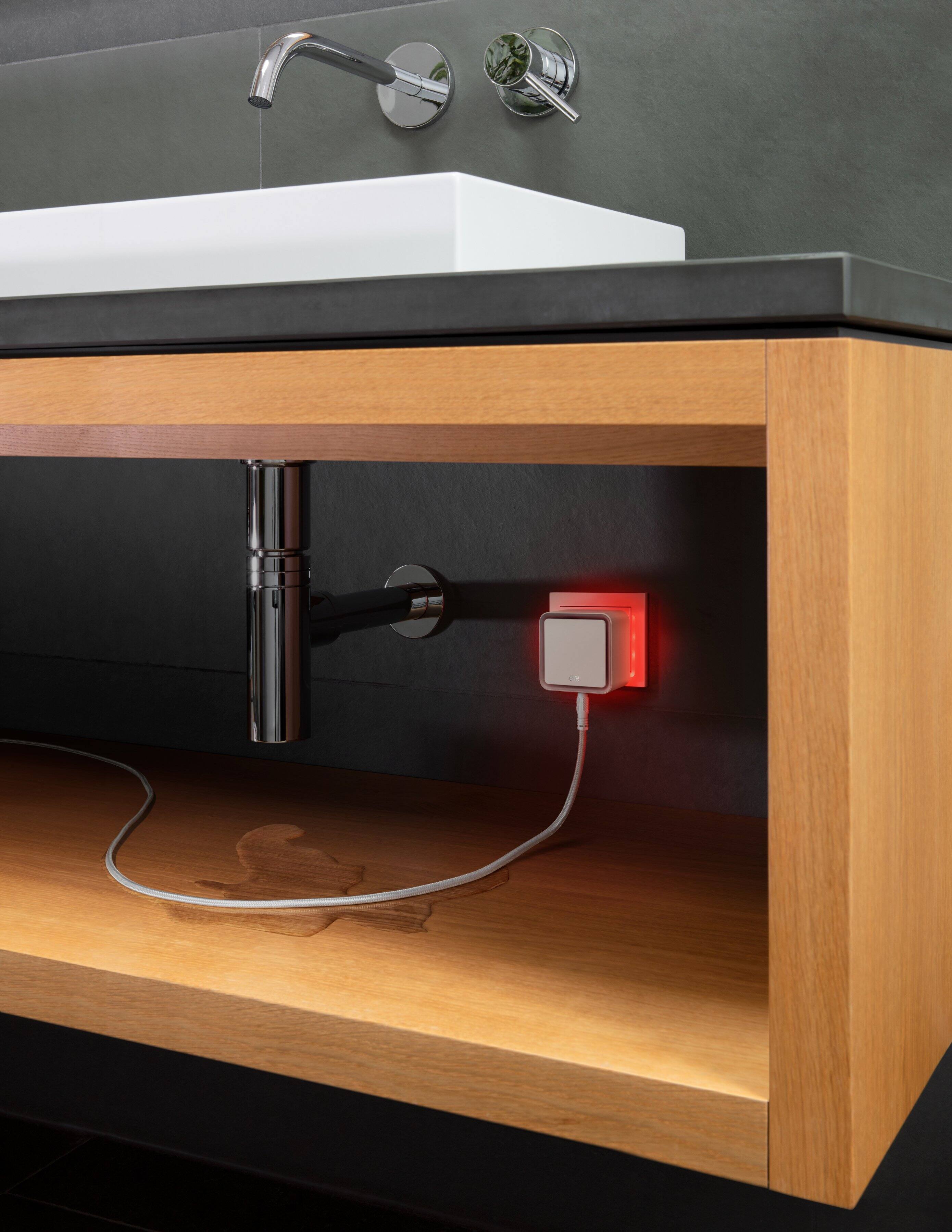 This leak detector has already saved me from a flood in my kitchen. The drain line was loose on my garbage disposal and when I turned it on it broke free, releasing water to the base cabinet. The alarm on the head end immediately sounded and less than second later my and my wife’s phones both started to alarm. I’m sold on these detectors. Have one under the kitchen sink and washing machine, and will be getting one for the water heater and grinder pump. With the rope detector, I am able to cover under the kitchen and the adjacent cabinet under the dishwasher. Now only if they made a shut off valve…