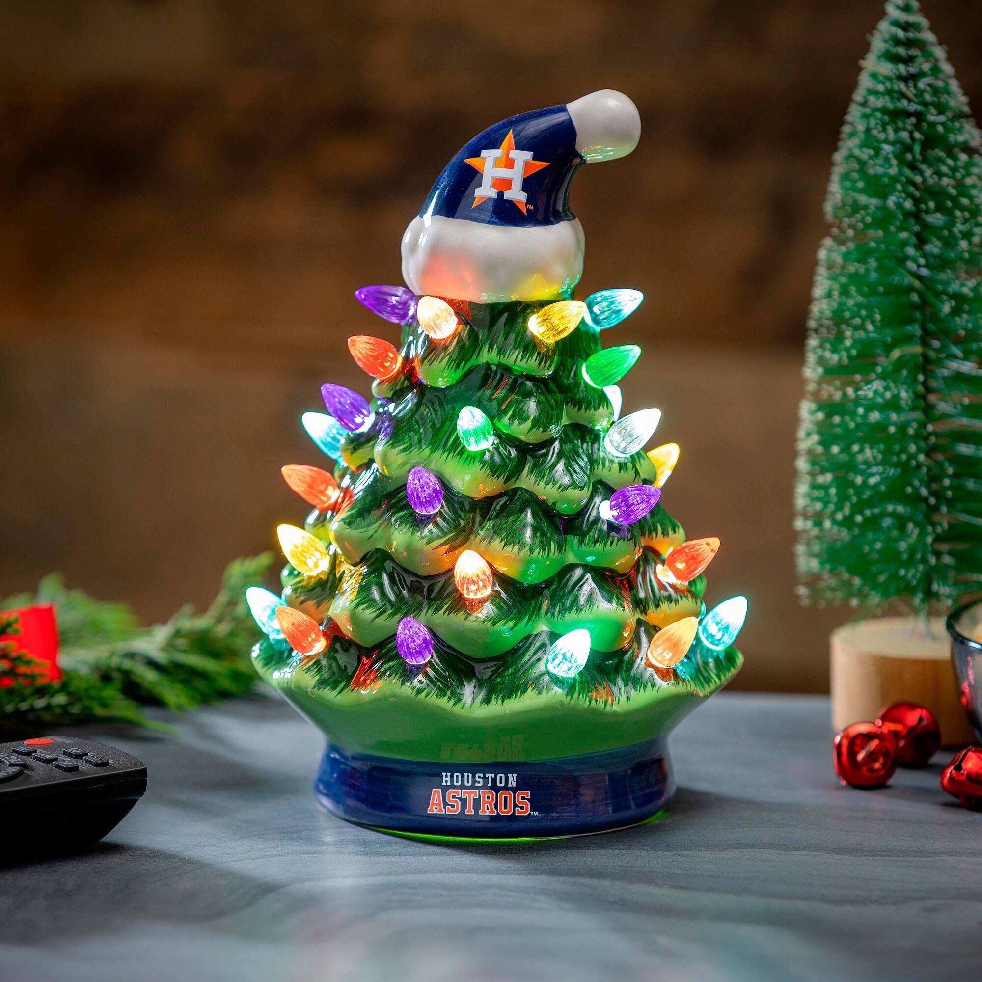 Cutest little light up tree! Purchased for my cubs fan hubby's office. Two things...its NOT electric (corded). I was assuming it was. Takes AA batteries, not included. Also, the little battery door requires a small standard screwdriver to get to removed. I had a hard time locating a tool that small. Finially did. But when all said and done its nice, well made piece. Recommand!