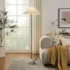 ||Posted .This reviewer received promo considerations or sweepstakes entry for writing a review.Marble base and size make this an attractive light piece for my living room. Replaced an old pole light. So glad I did.