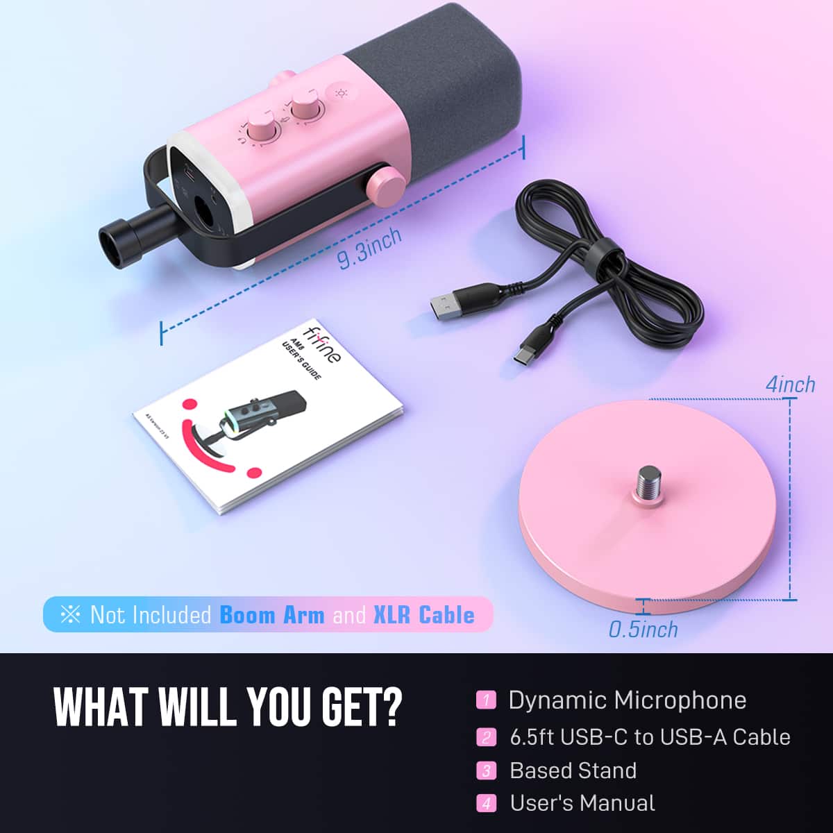 Ok first I just want to say I have been a big fan of Fifine from a couple years. I was just starting out on a tight budget to stream and Fifine fit the bill for me And every time I buy a product it seems they get better and better. This Mic here the AM8 is really 2 mics in one, It has usb and xlr. So you can start with a usb mic and work your way up later to the xlr and have more control over your sound with a xlr mixer later on if you want. Or if your like me and on the go I just bring a usb c cable and can connect this mic to my laptop with no issues and when I get back to my main setup I just plug it back into my xlr Hub and again ready to go. Led light on base is bight but not too bright, if you like the rgb. its a clean look and not over the top.